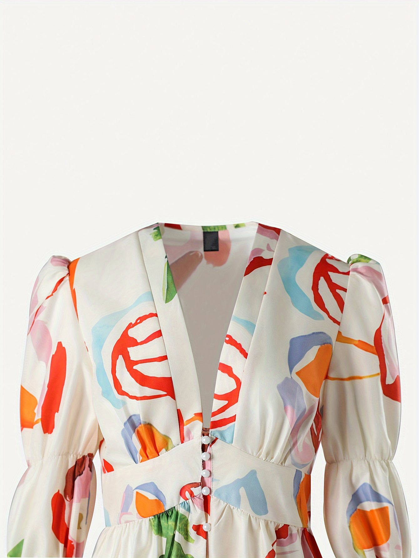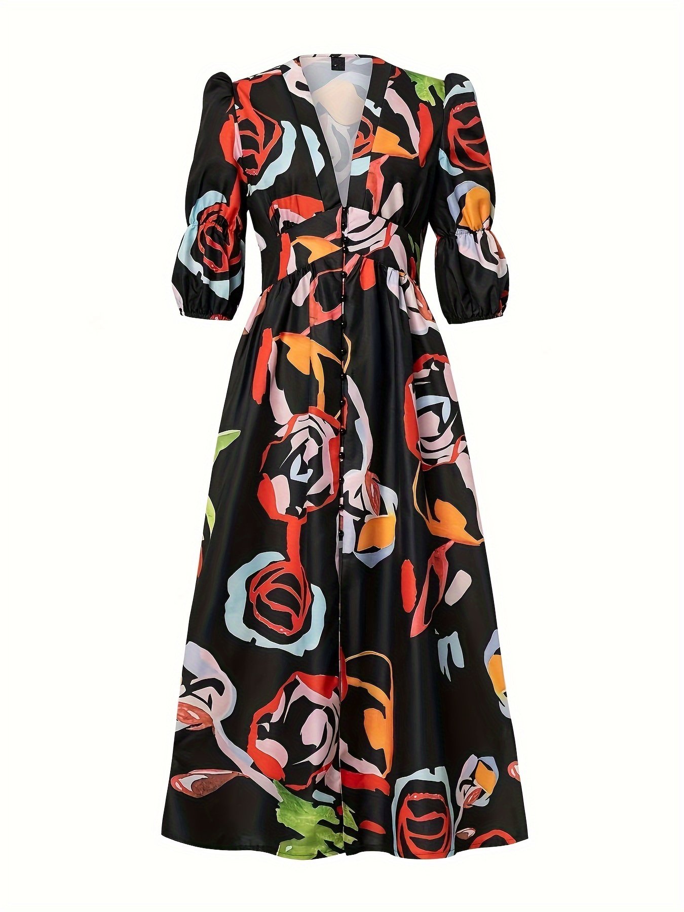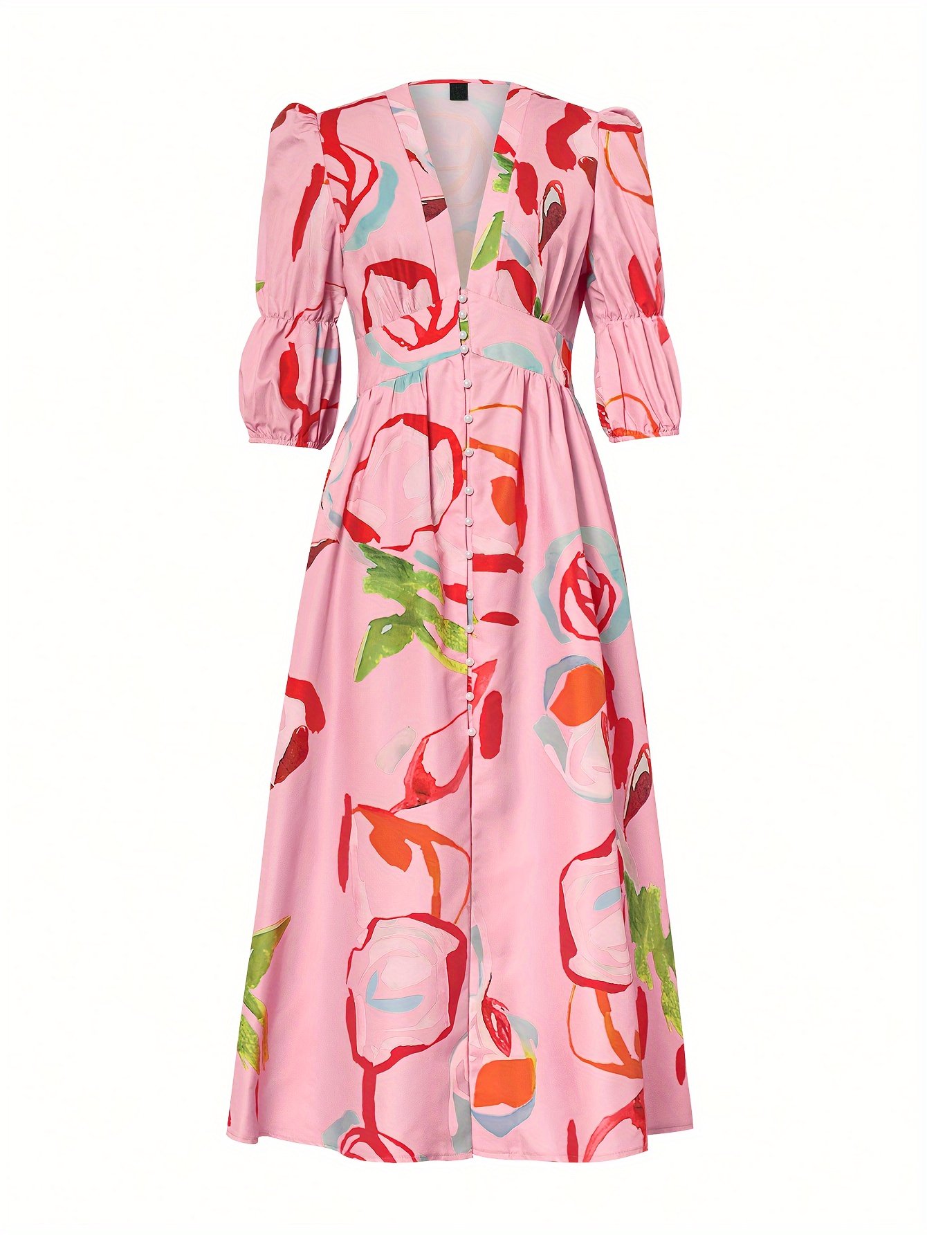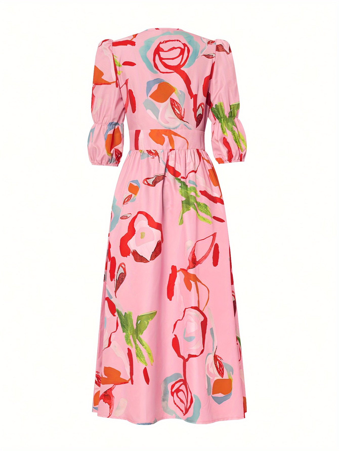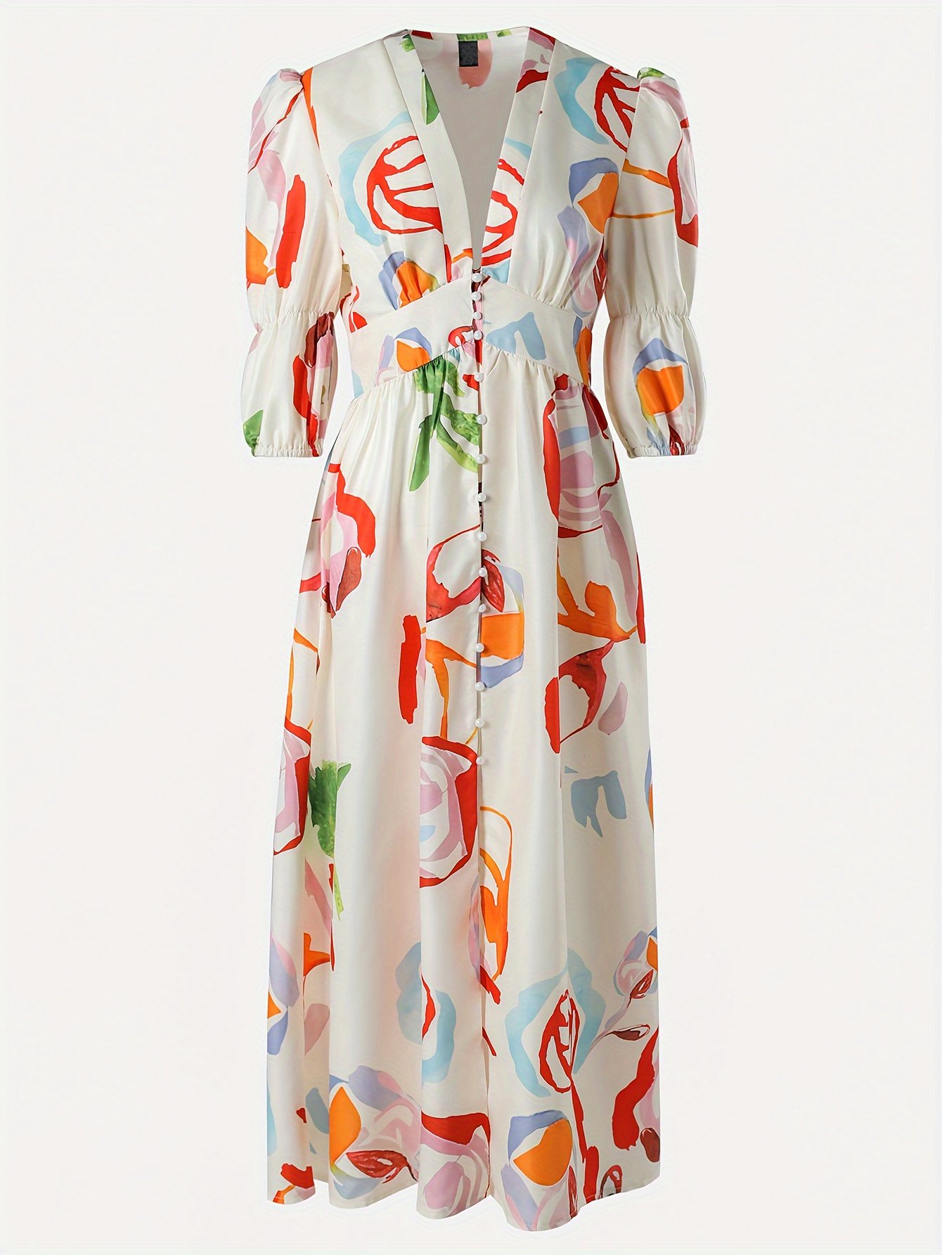 2 reviews for Allover Print V-neck Dress, Elegant Short Sleeve A-line Dress For Spring & Summer, Women’s Clothing