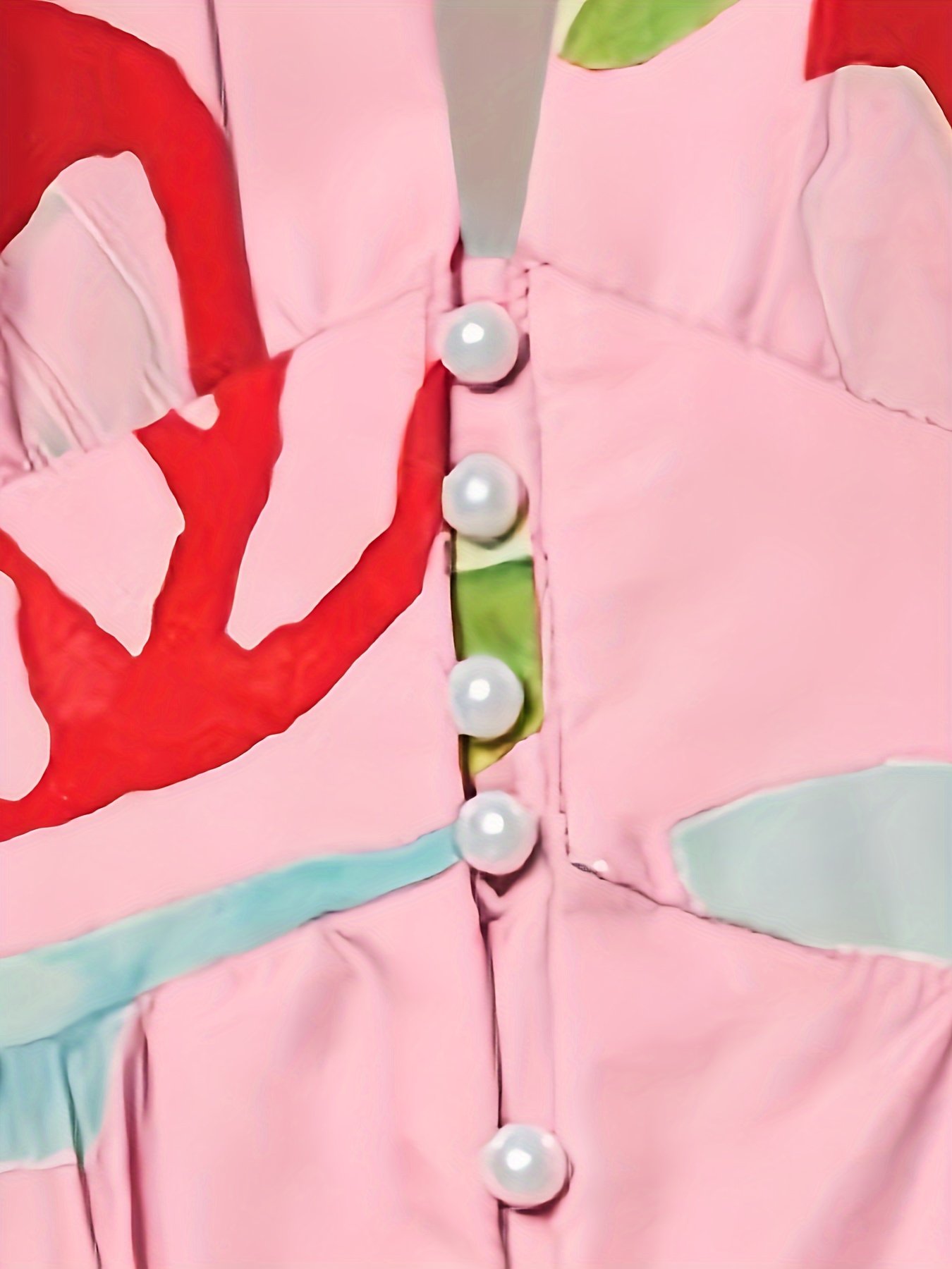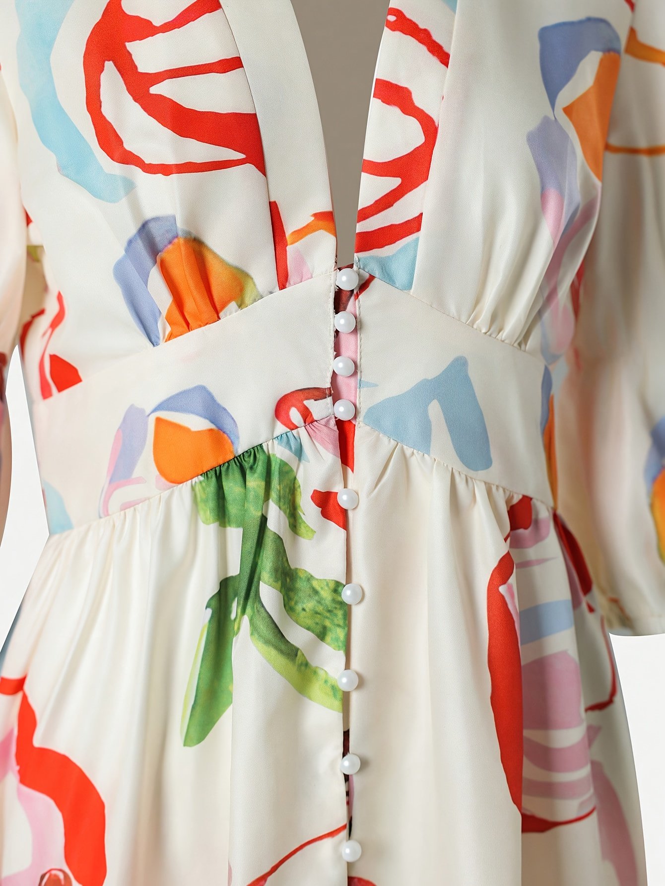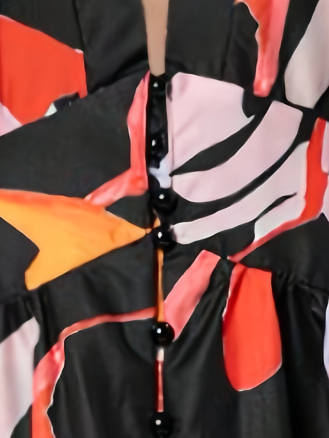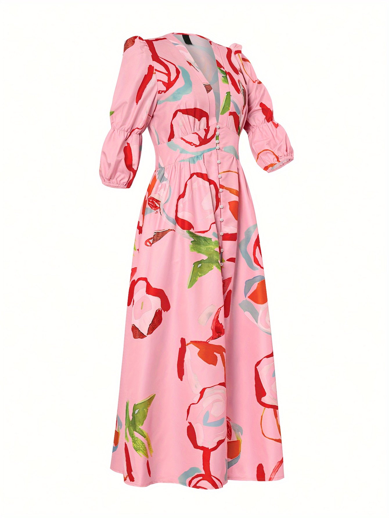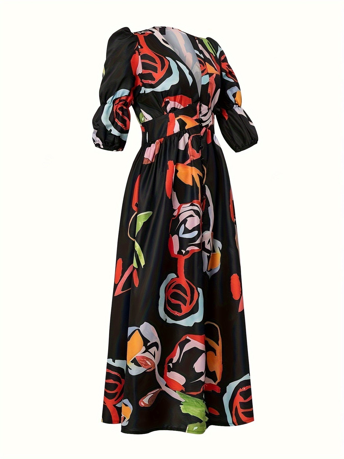 2 reviews for Allover Print V-neck Dress, Elegant Short Sleeve A-line Dress For Spring & Summer, Women’s Clothing