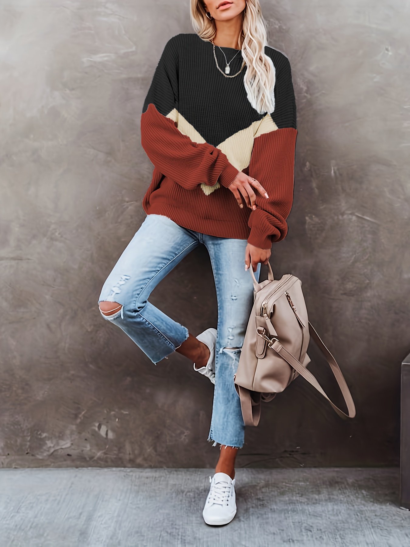 Stylish Design: Color block pattern adds a trendy touch to your outfit