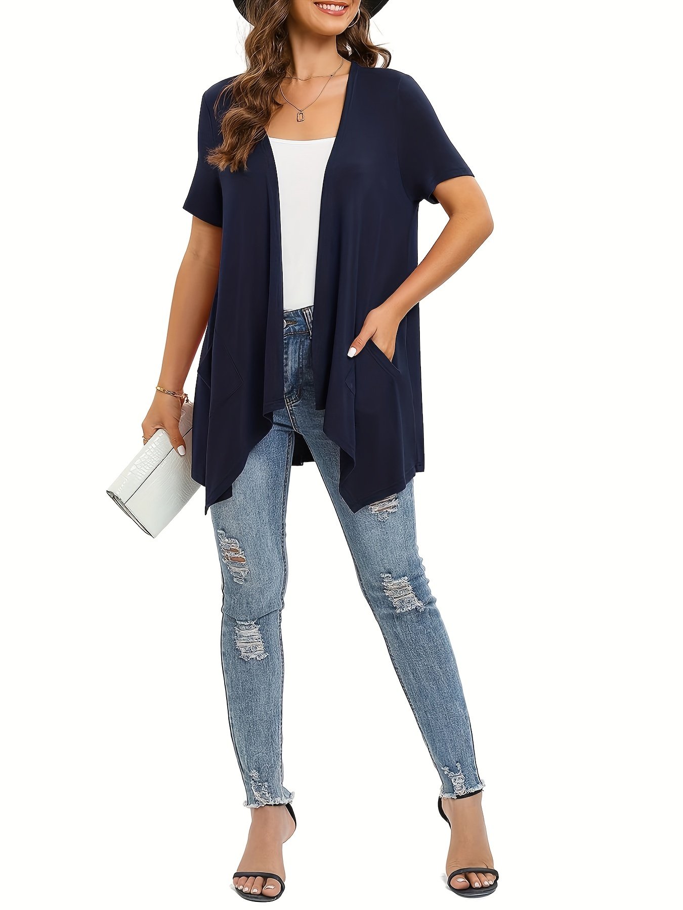 Reviews There are no reviews yet. Be the first to review “Dual Pockets Open Front Coat, Casual Short Sleeve Coat For Spring & Summer, Women’s Clothing”Cancel ReplyYour email address will not be published. Required fields are marked *Your rating * Rate… Perfect Good Average Not that bad Very poor Name *Email *Your review * I accept the Privacy Policy Submit