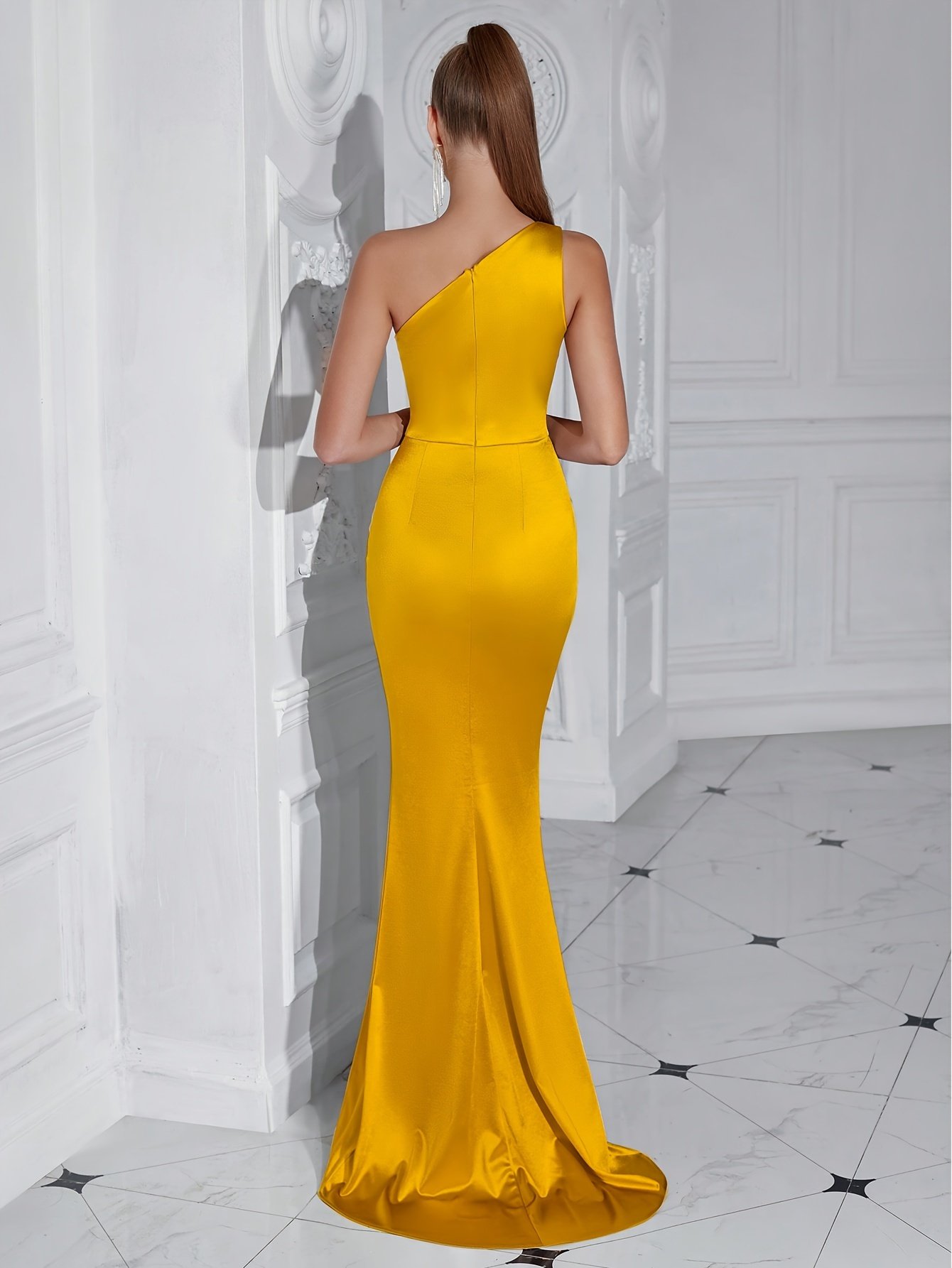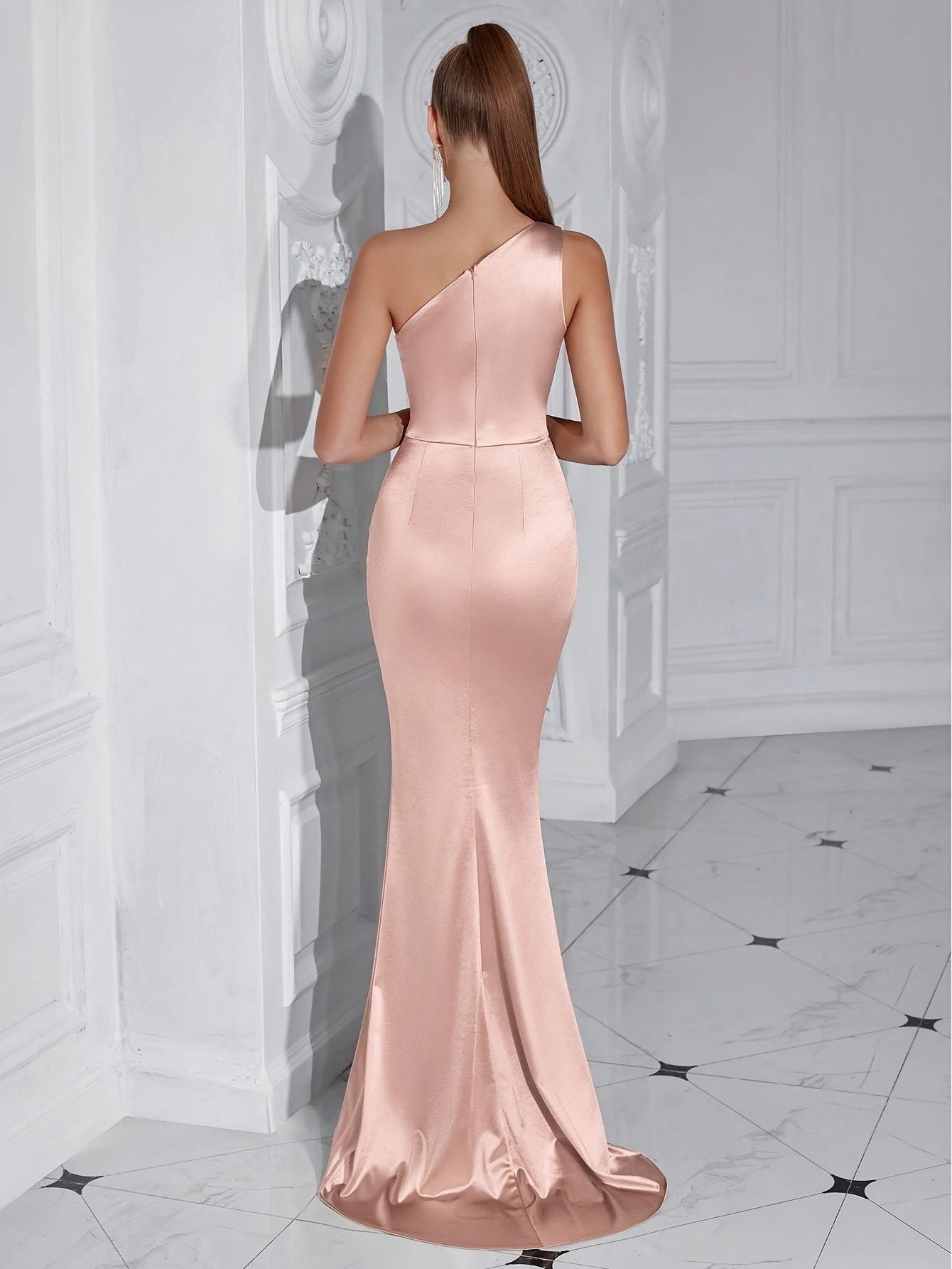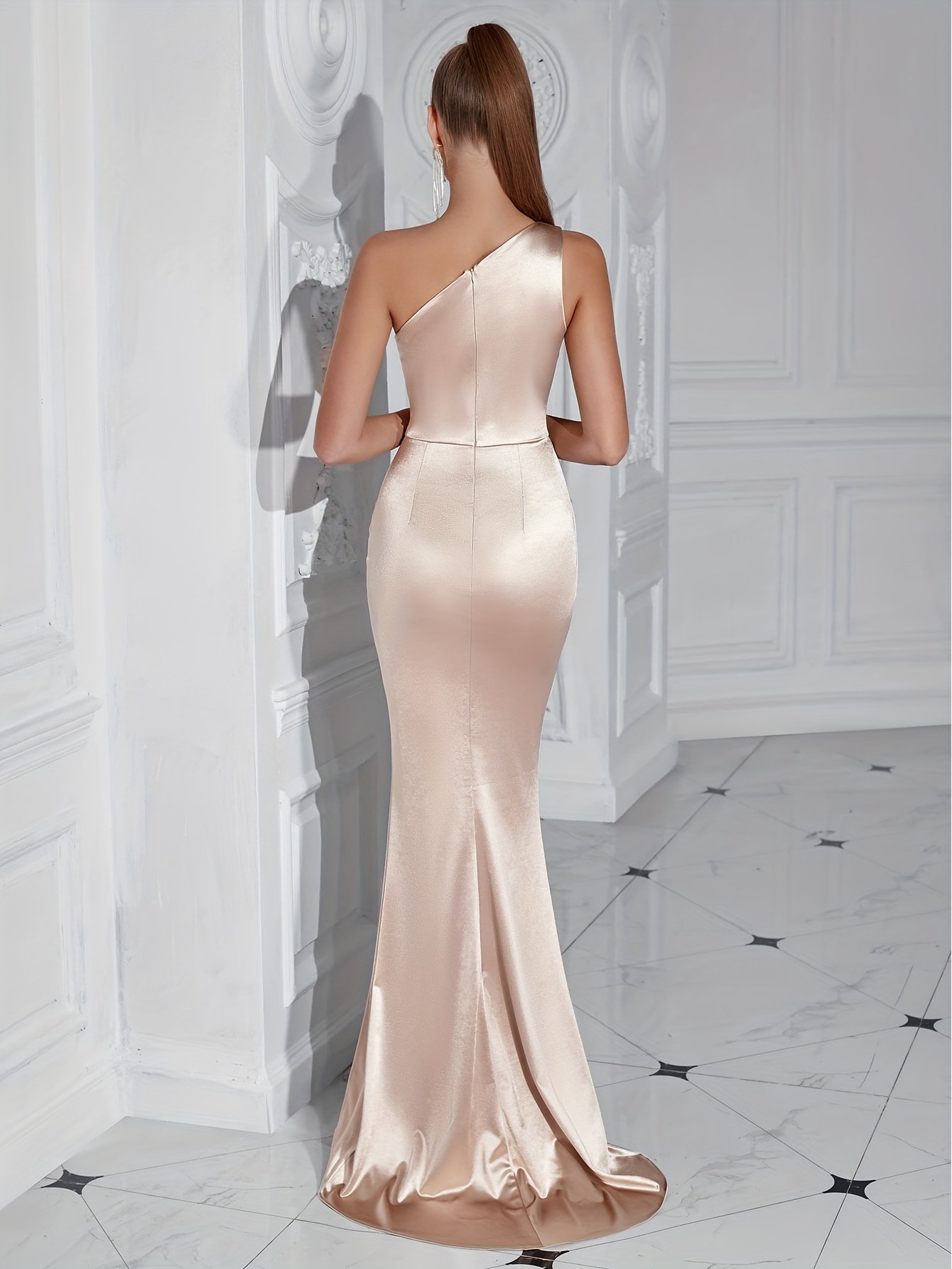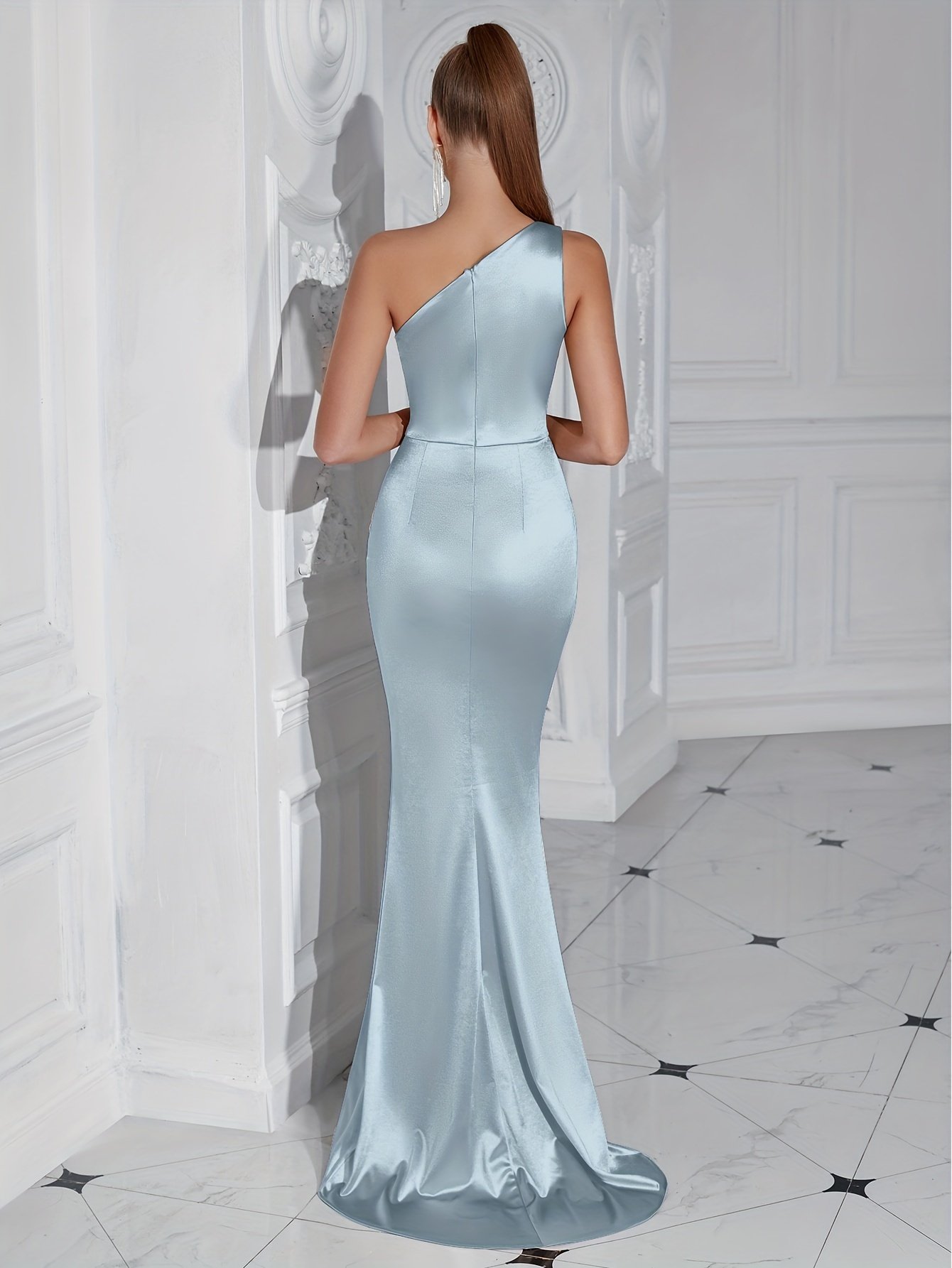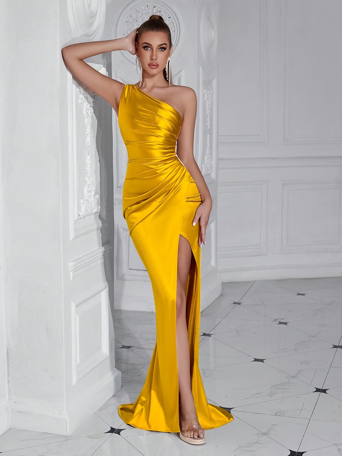 One Shoulder Split Thigh Ruched Dress, Elegant Sleeveless Dress For Party & Banquet, Women’s Clothing Wedding/Evening dress/Occasion/Engagement/Ceremony
