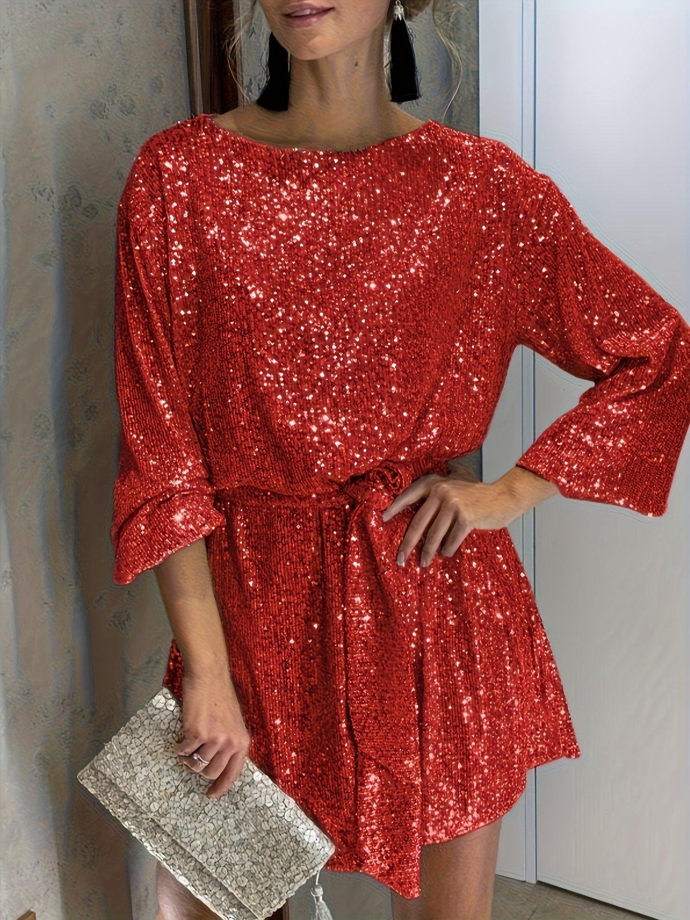 Reviews There are no reviews yet. Be the first to review “Sequined Tie Waist Dress, Elegant Solid Dress For Club & Party, Women’s Clothing”Cancel ReplyYour email address will not be published. Required fields are marked *Your rating * Rate… Perfect Good Average Not that bad Very poor Name *Email *Your review * I accept the Privacy Policy Submit