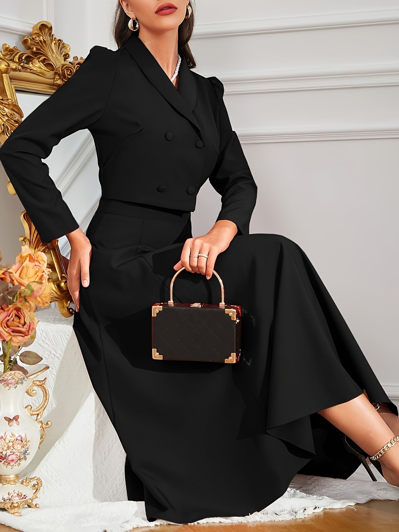 Reviews There are no reviews yet. Be the first to review “Solid Color Elegant Skirt Suit, Double Button Long Sleeve Crop Jacket & High Waist Midi Skirt Outfits, Women’s Clothing”Cancel ReplyYour email address will not be published. Required fields are marked *Your rating * Rate… Perfect Good Average Not that bad Very poor Name *Email *Your review * I accept the Privacy Policy Submit
