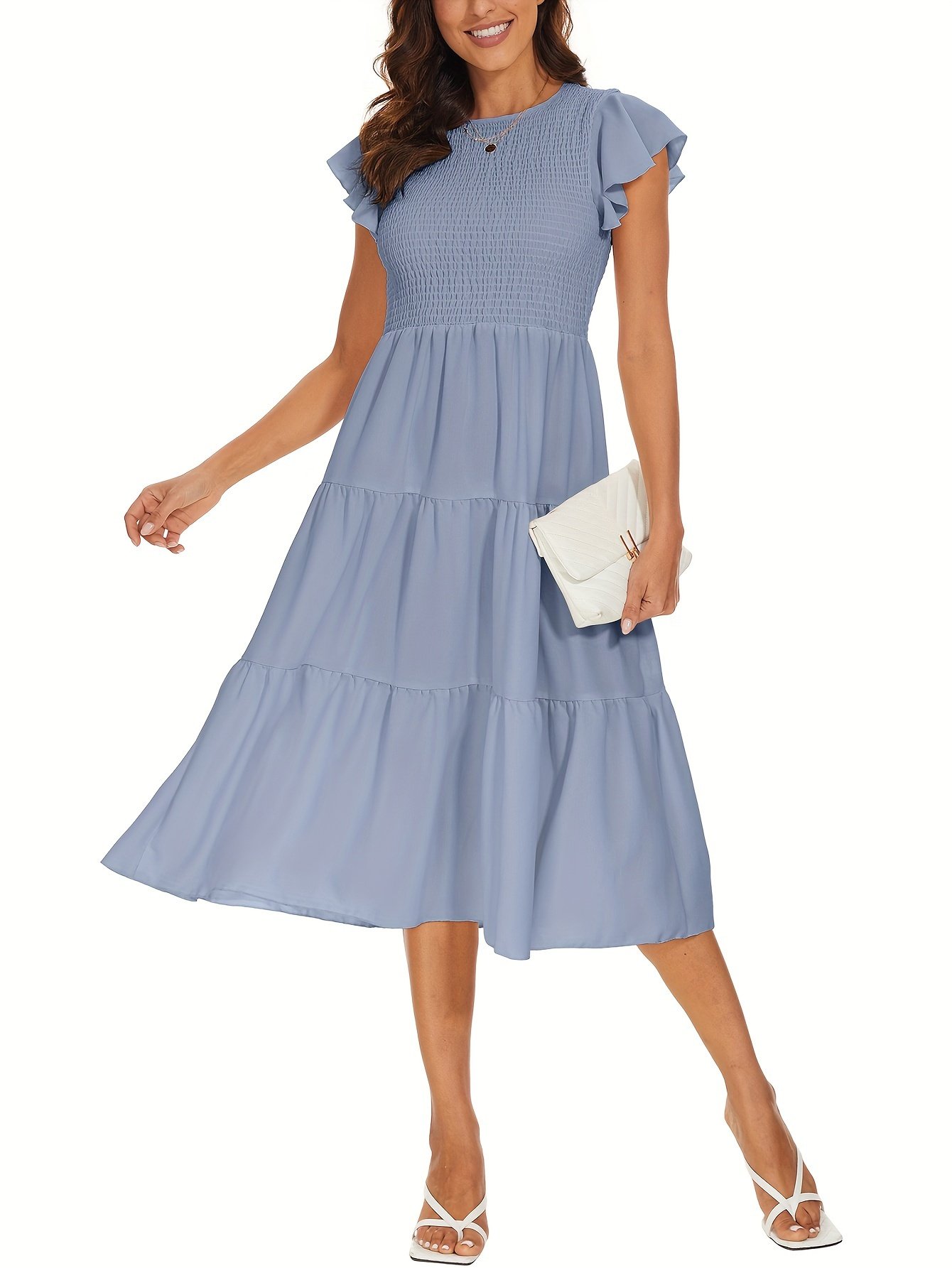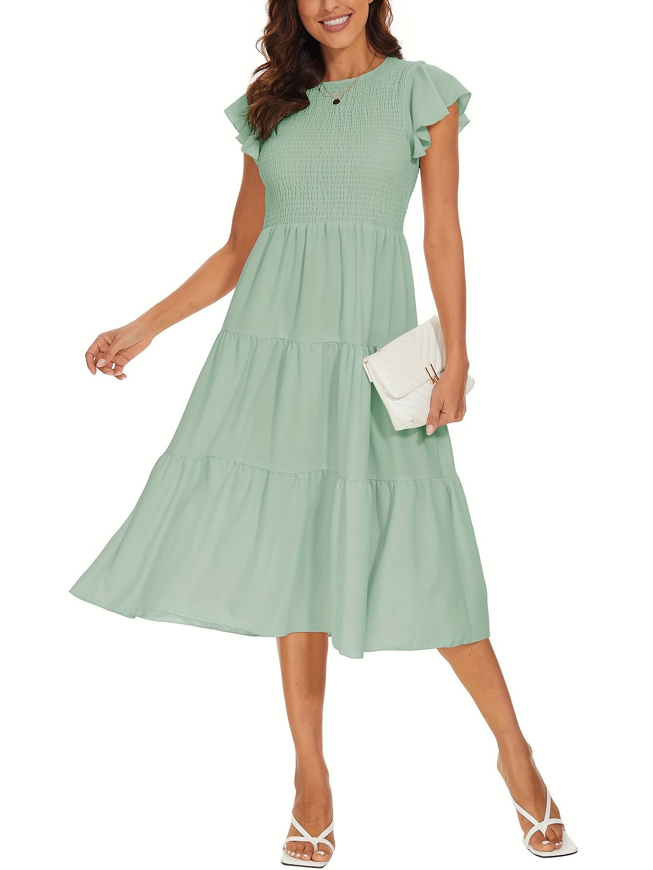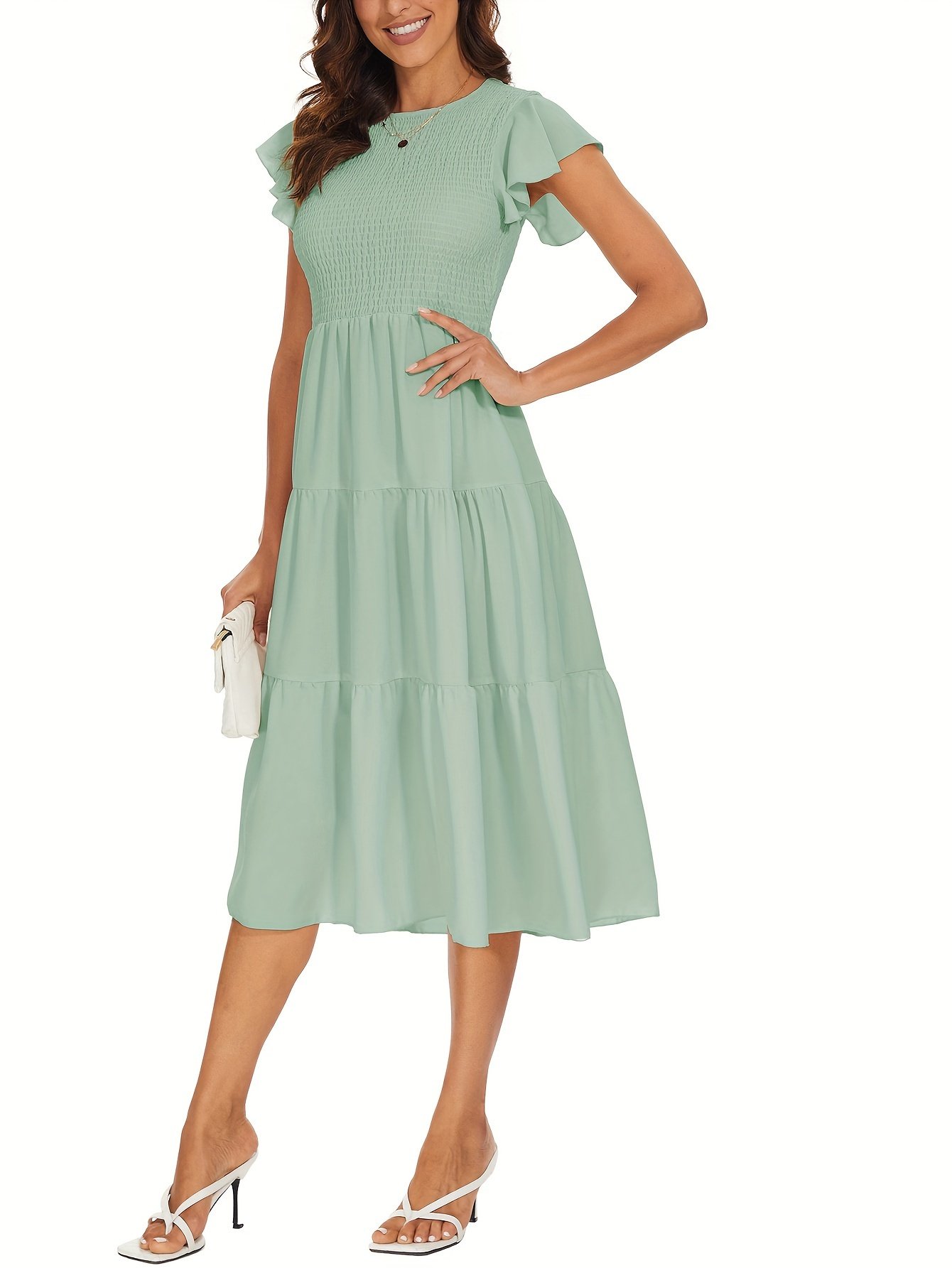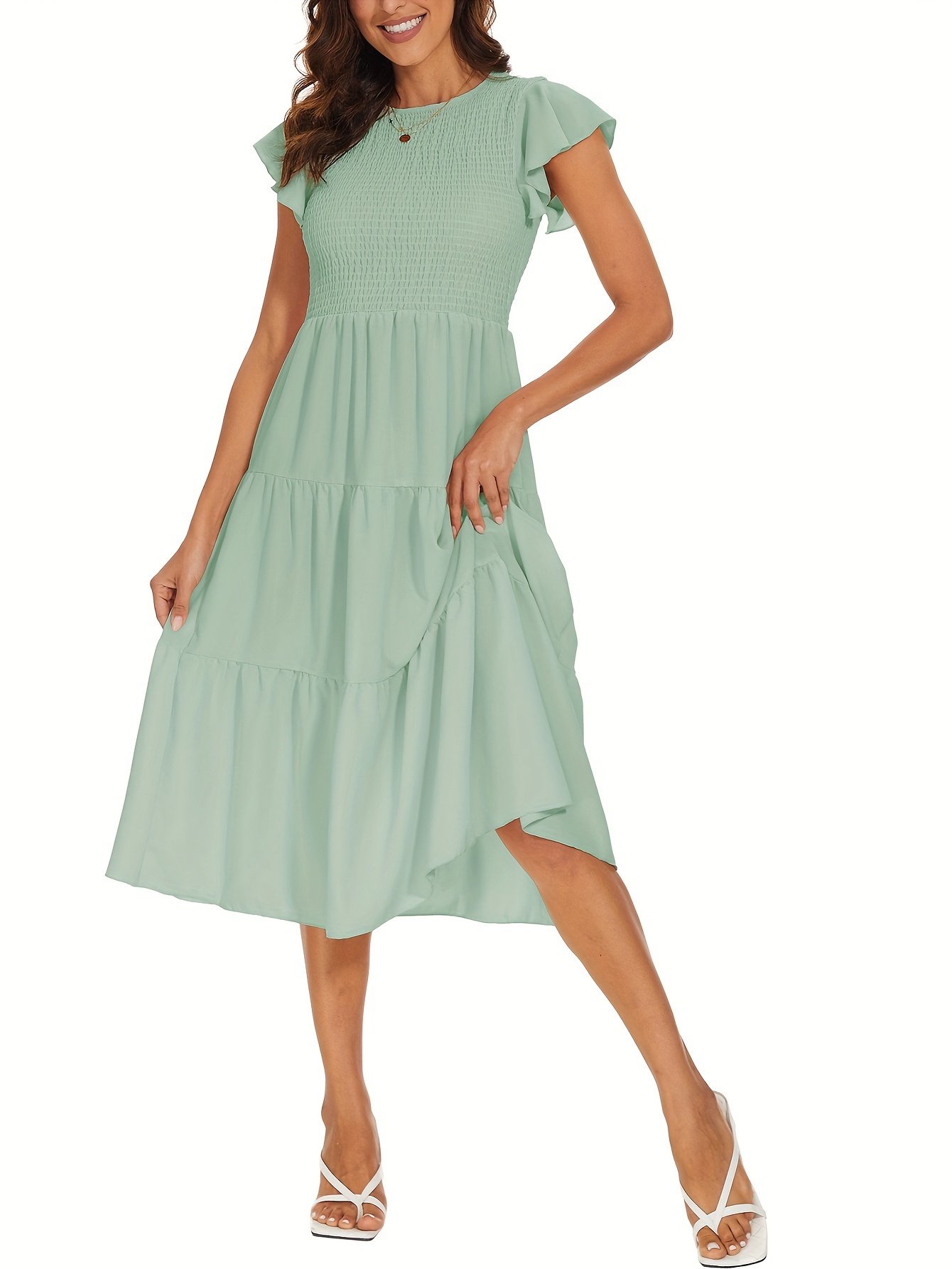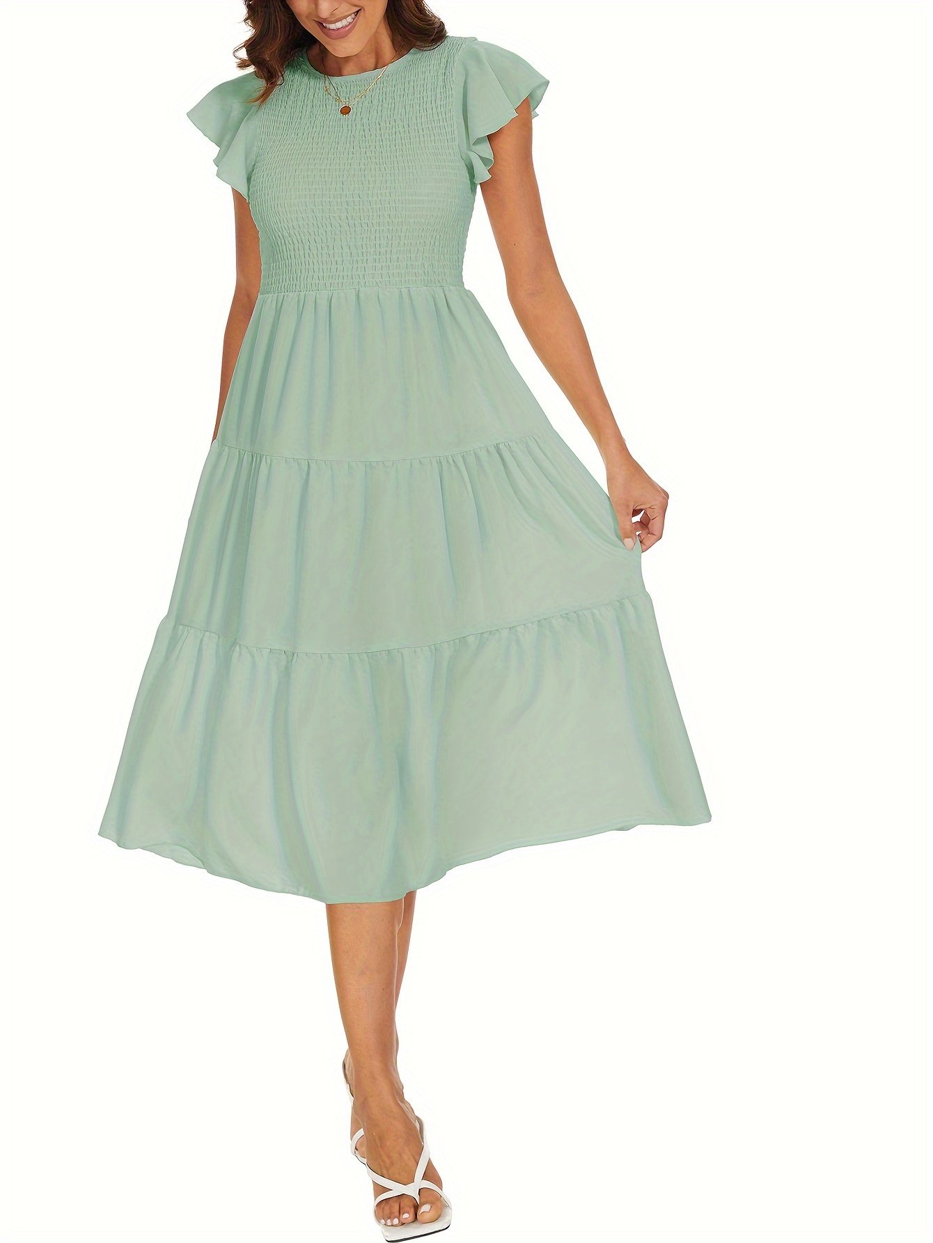 Reviews There are no reviews yet. Be the first to review “Solid Color Shirred Midi Dress, Elegant Flutter Sleeve Ruffle Hem Dress For Spring & Summer, Women’s Clothing”Cancel ReplyYour email address will not be published. Required fields are marked *Your rating * Rate… Perfect Good Average Not that bad Very poor Name *Email *Your review * I accept the Privacy Policy Submit