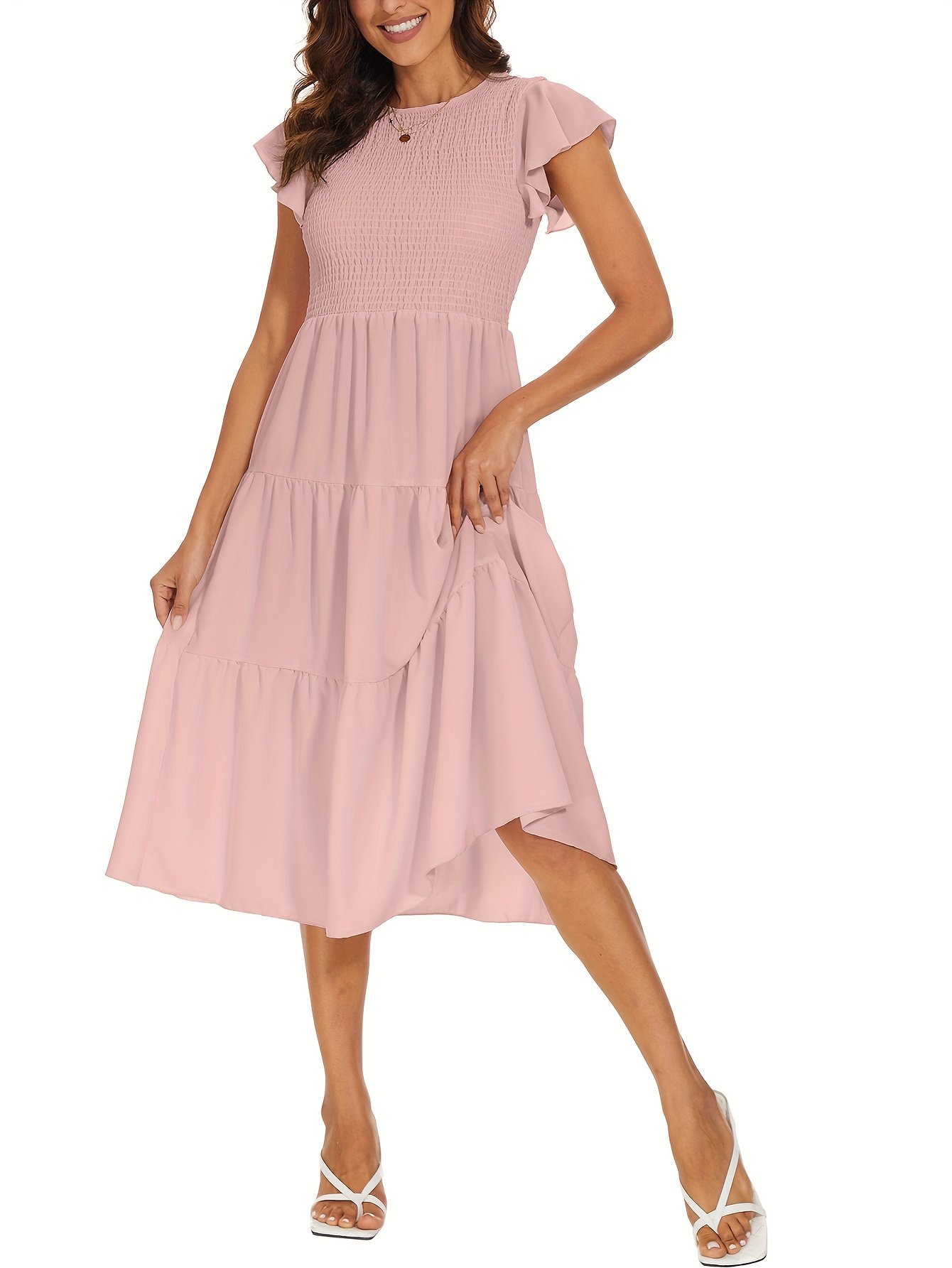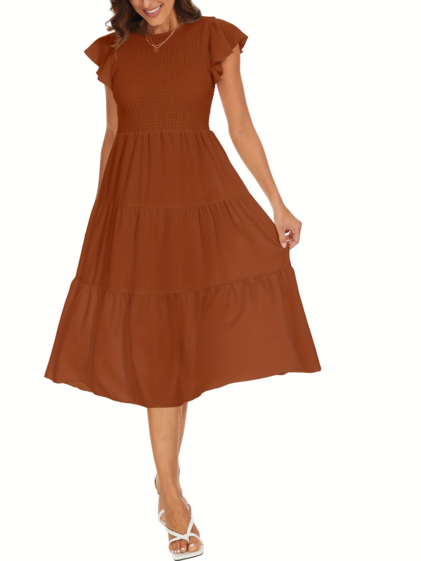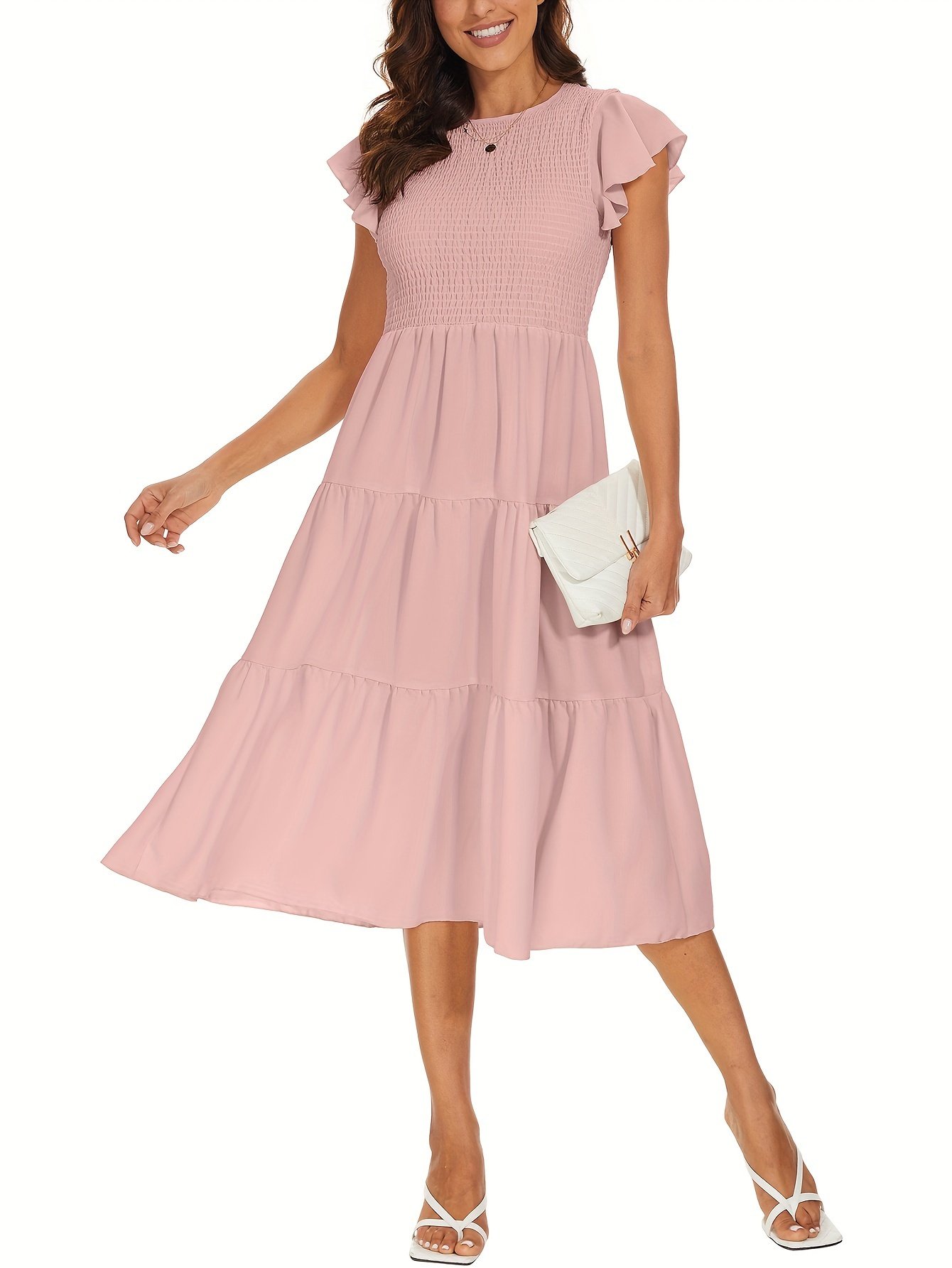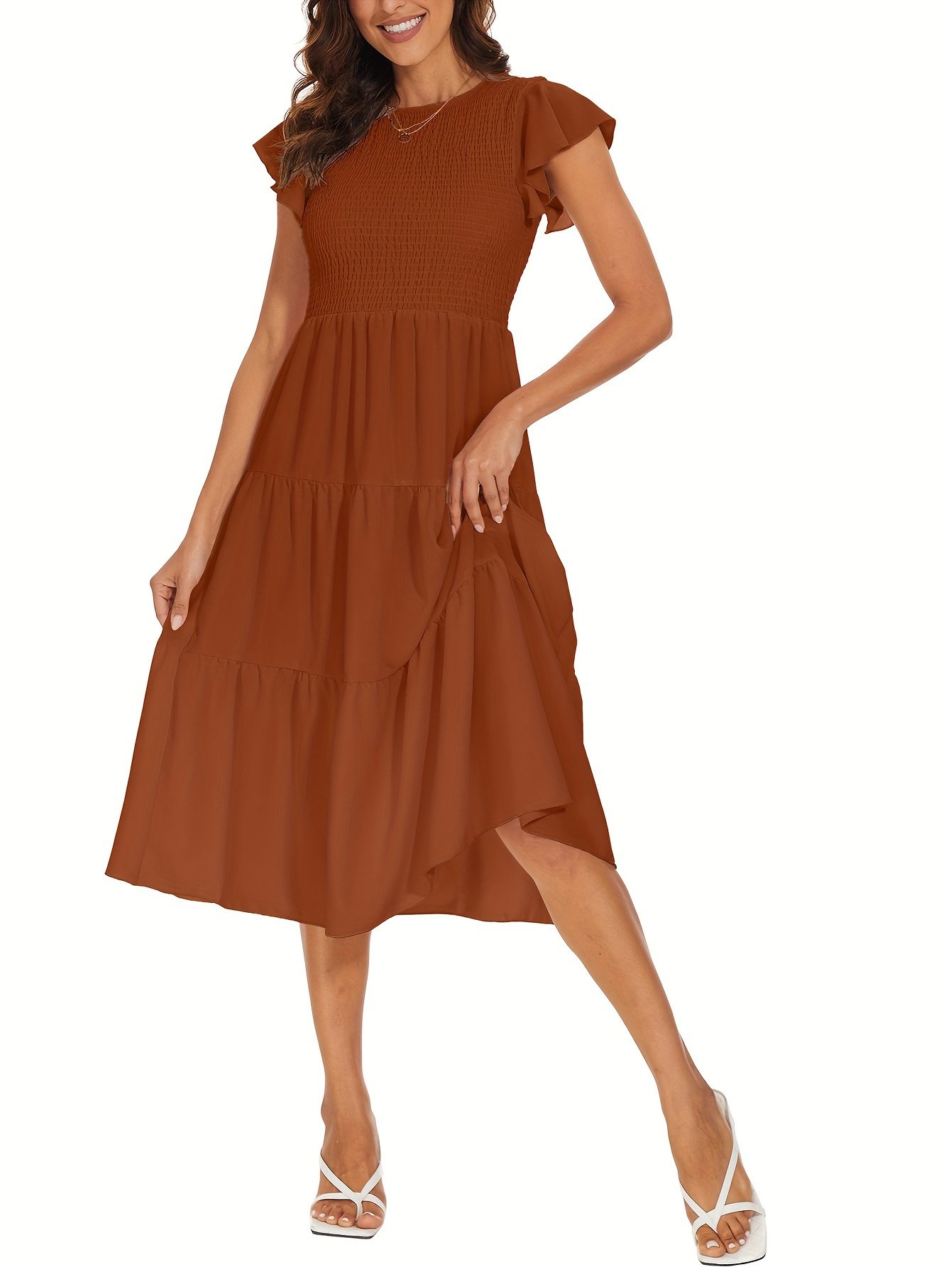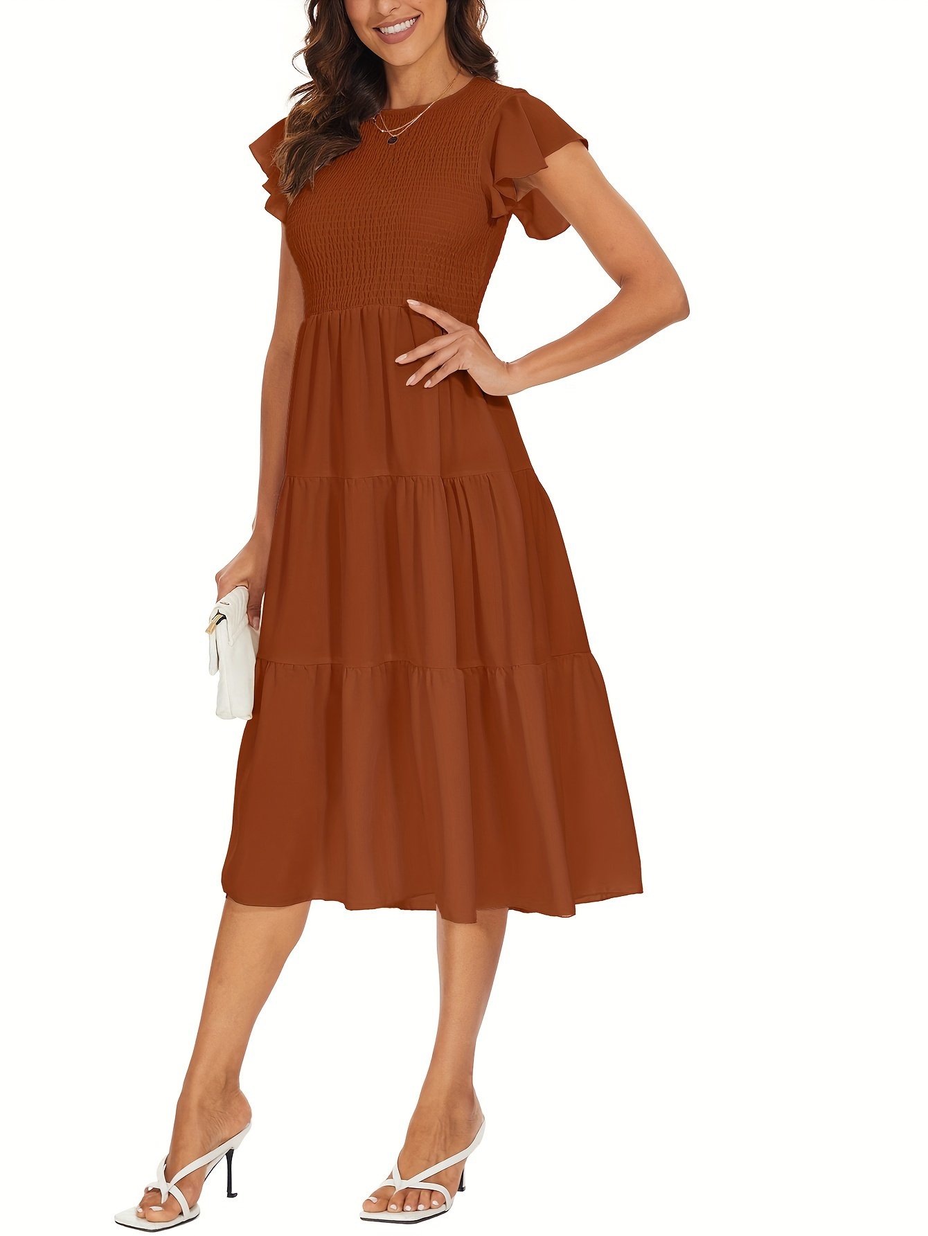Reviews There are no reviews yet. Be the first to review “Solid Color Shirred Midi Dress, Elegant Flutter Sleeve Ruffle Hem Dress For Spring & Summer, Women’s Clothing”Cancel ReplyYour email address will not be published. Required fields are marked *Your rating * Rate… Perfect Good Average Not that bad Very poor Name *Email *Your review * I accept the Privacy Policy Submit