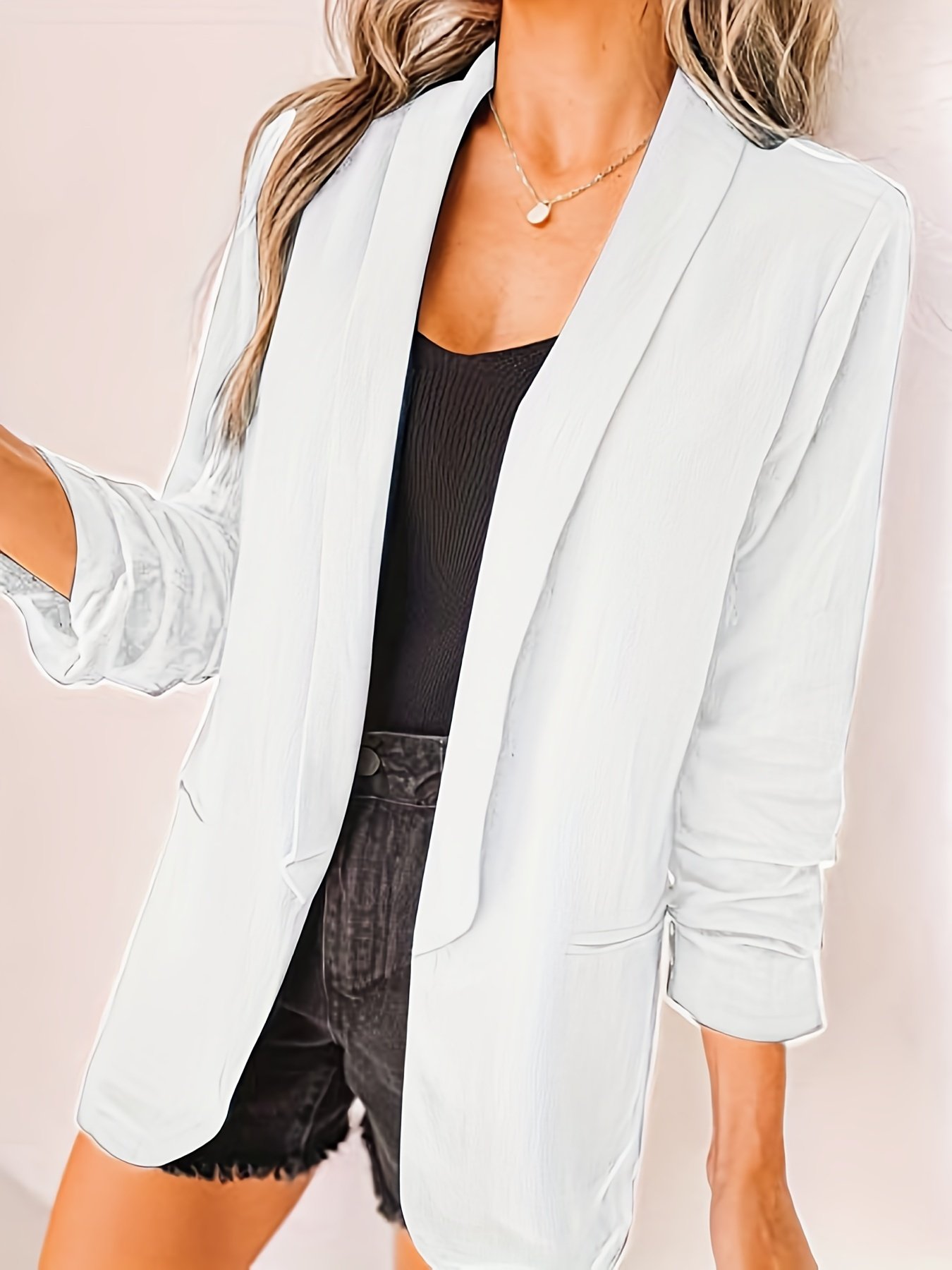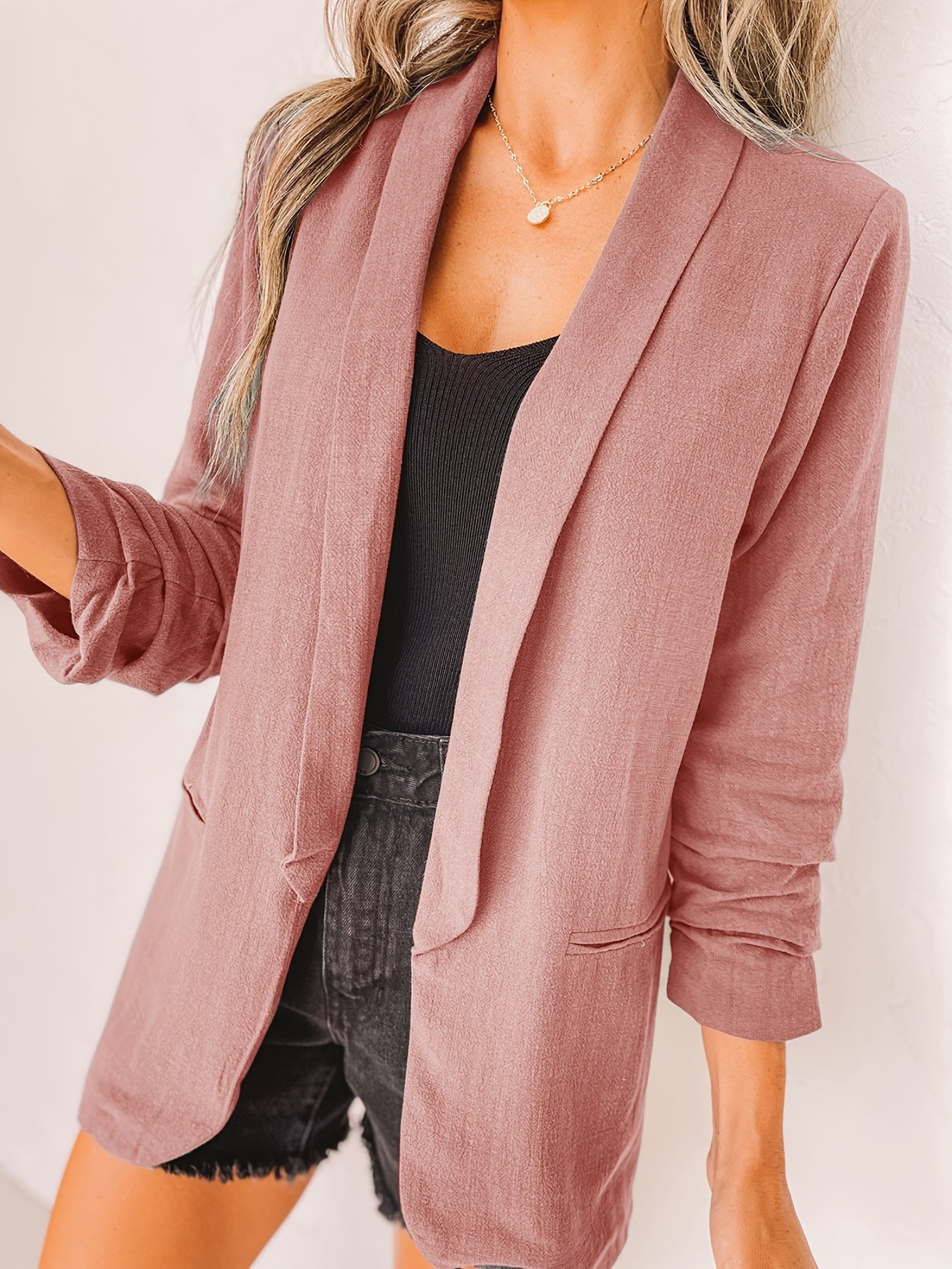 Solid Lapel Blazer Jacket, Casual Long Sleeve Office Work Outerwear, Women’s Clothing