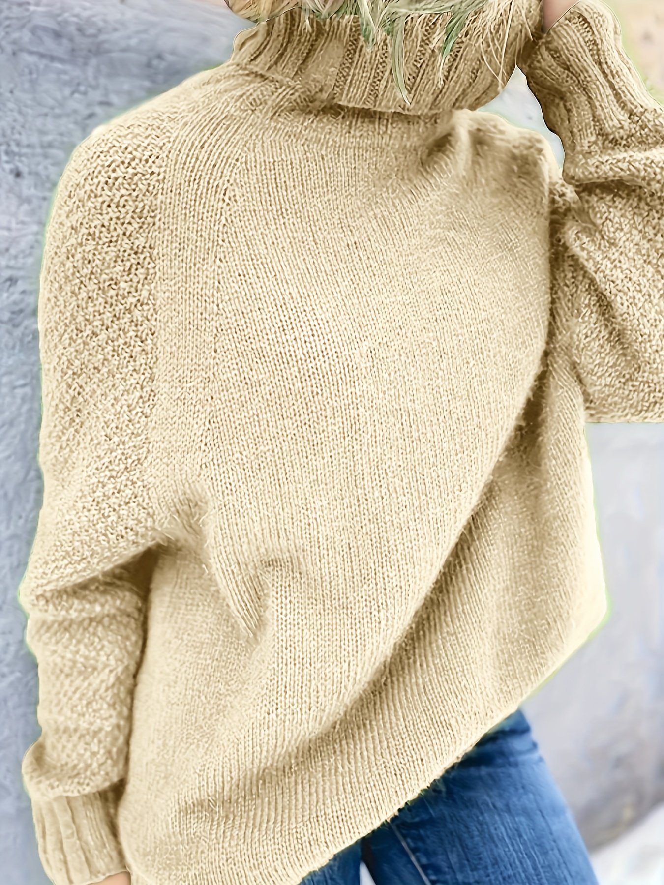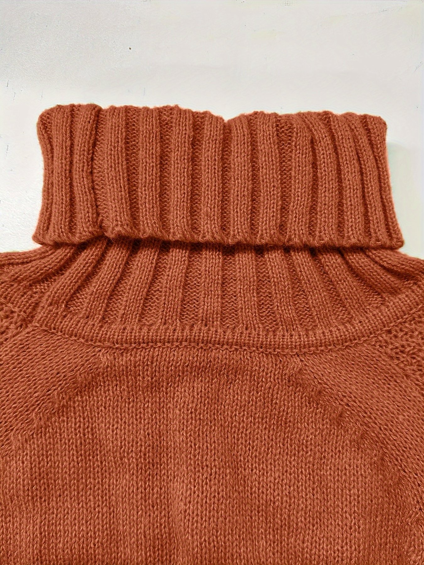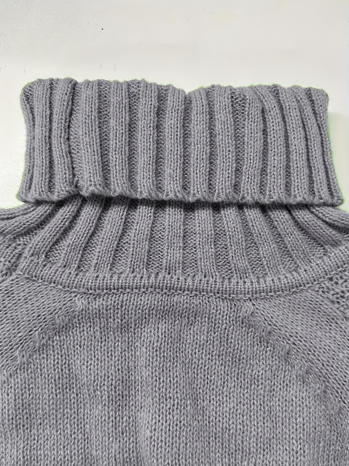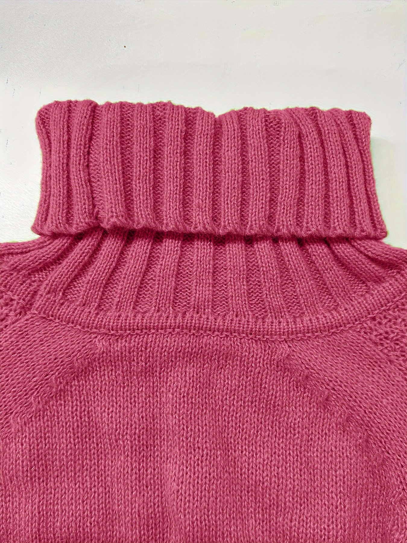 Solid Turtle Neck Loose Pullover Sweater, Casual Long Sleeve Raglan Shoulder Sweater, Women’s Clothing