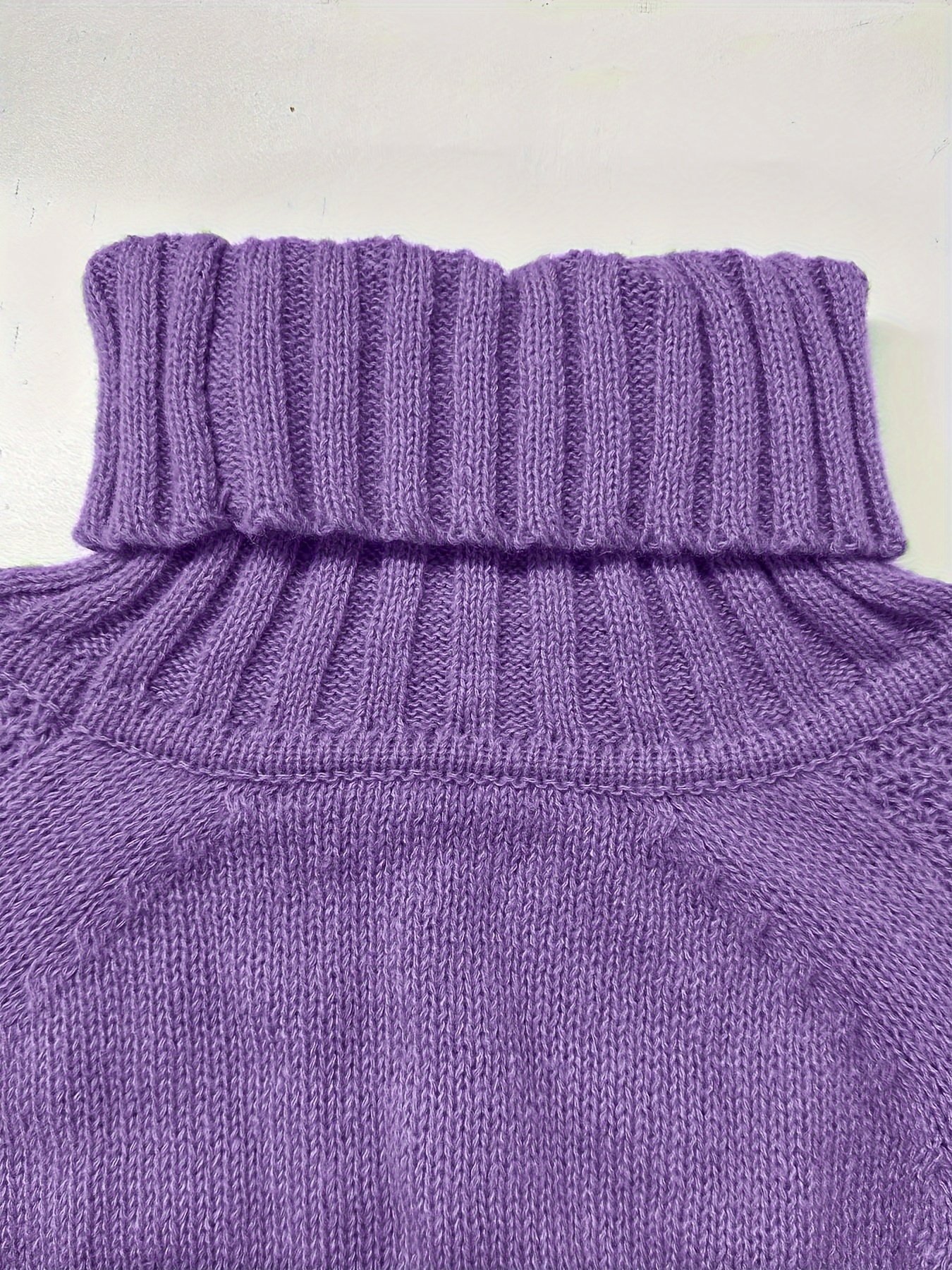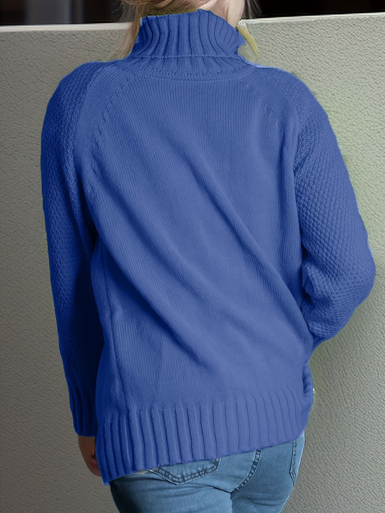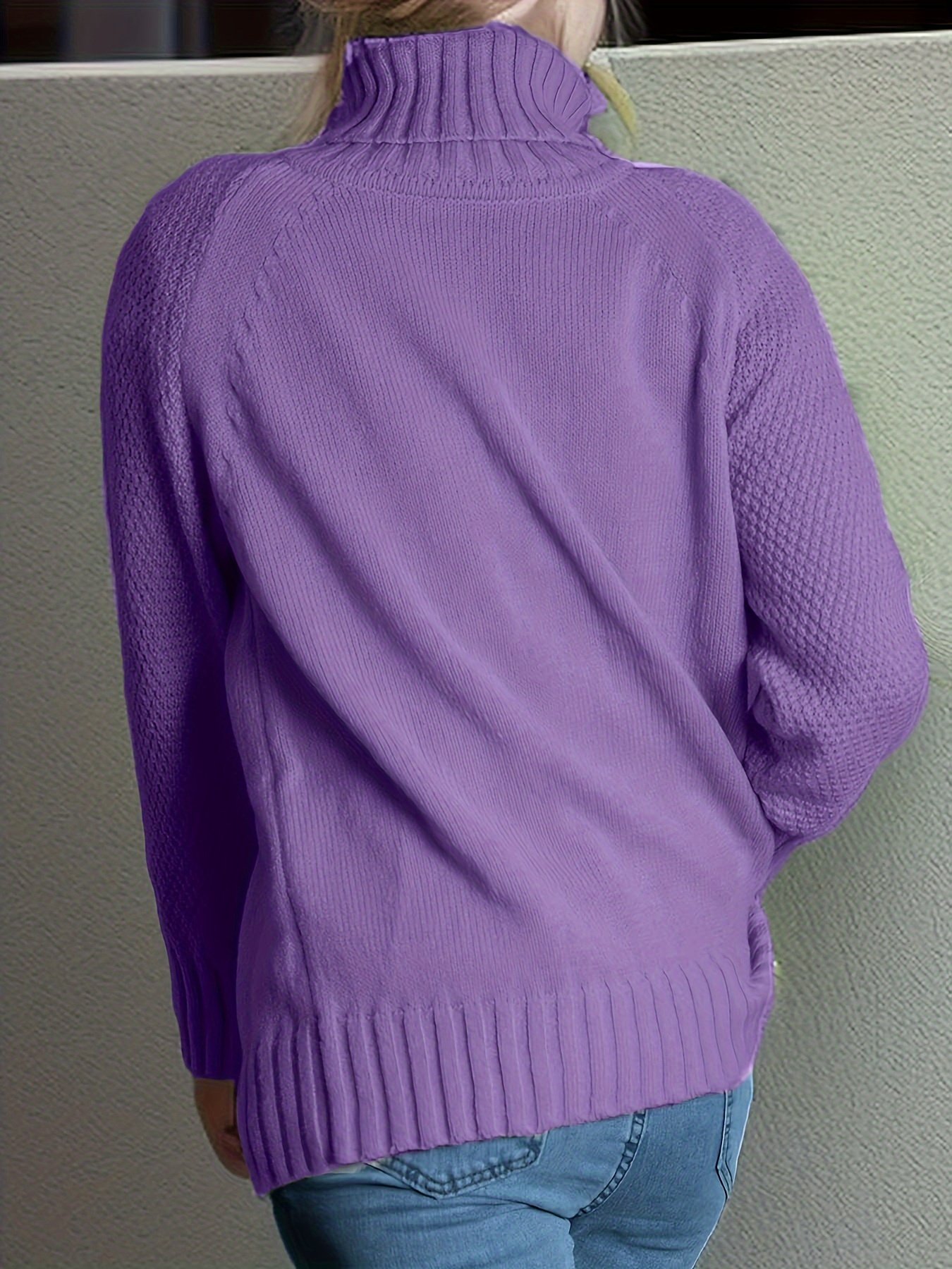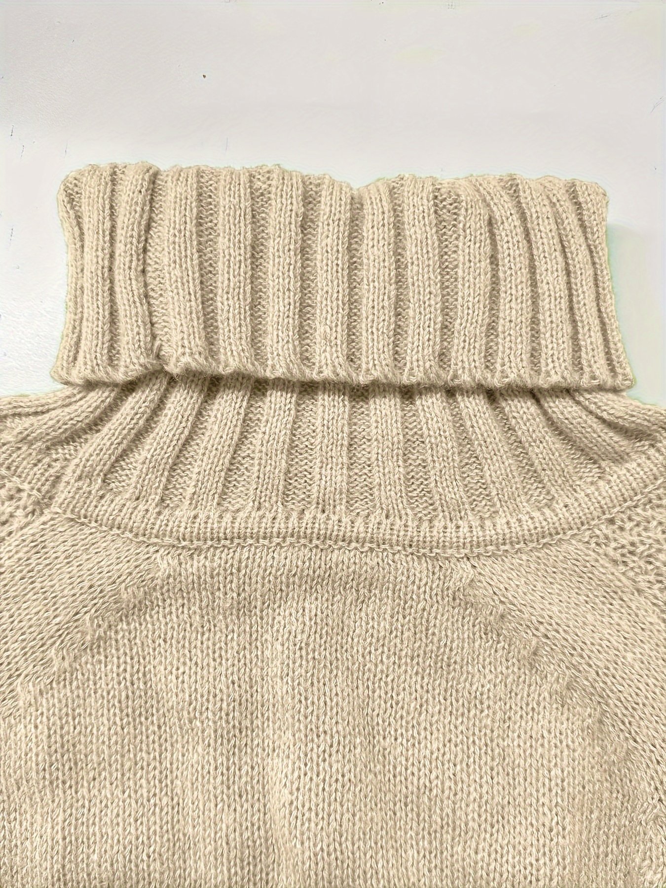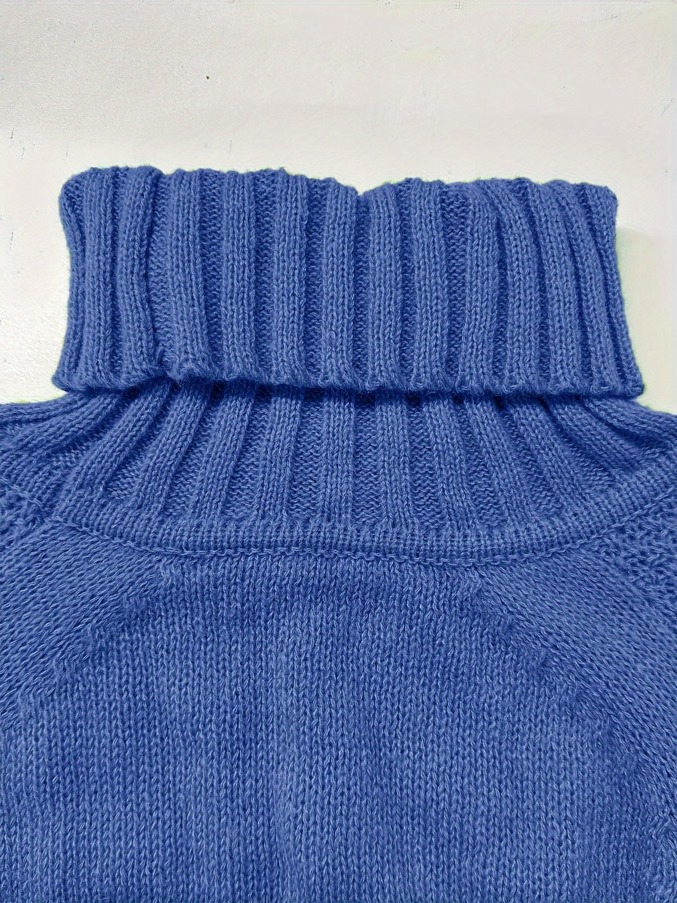 Solid Turtle Neck Loose Pullover Sweater, Casual Long Sleeve Raglan Shoulder Sweater, Women’s Clothing