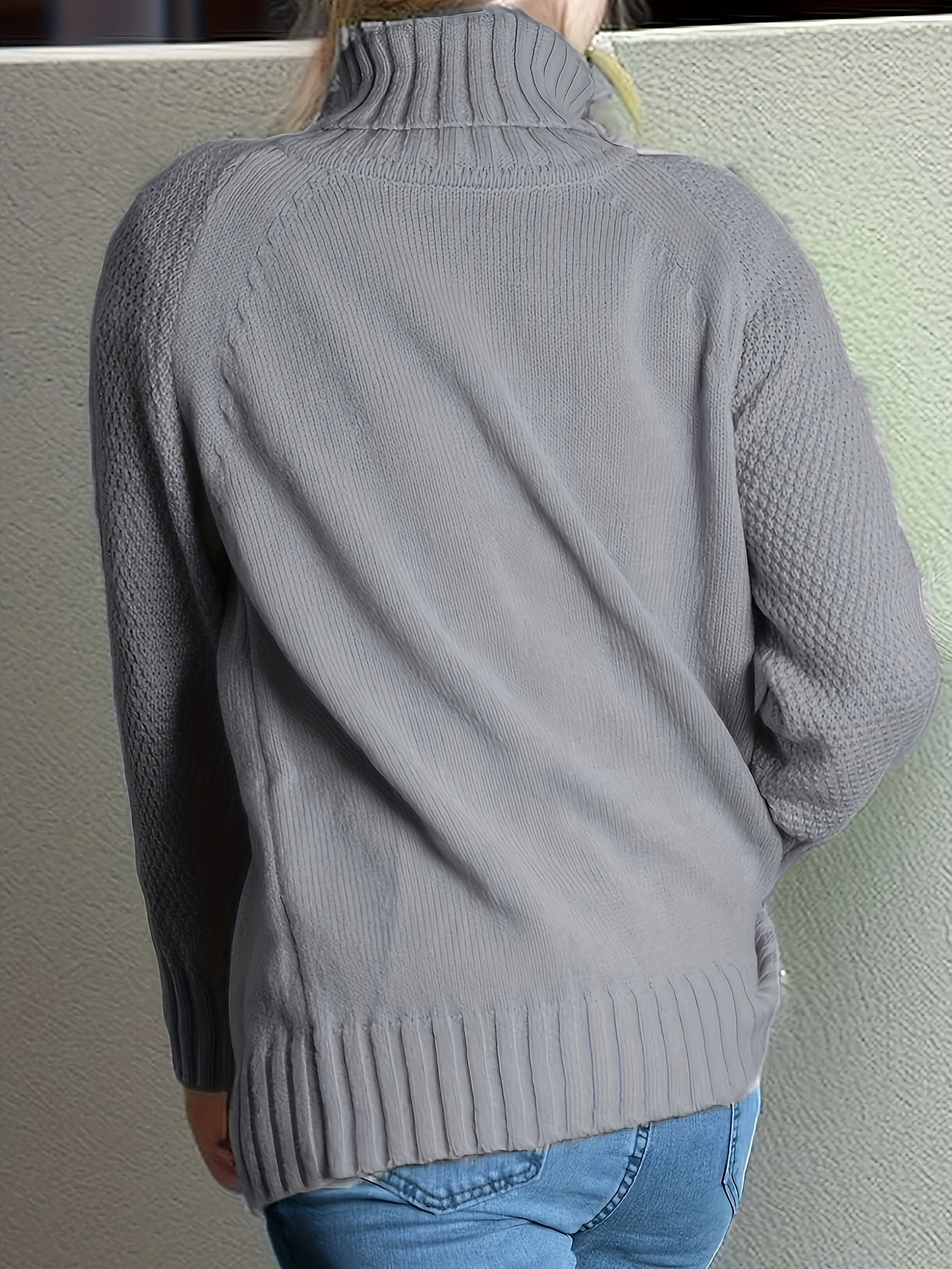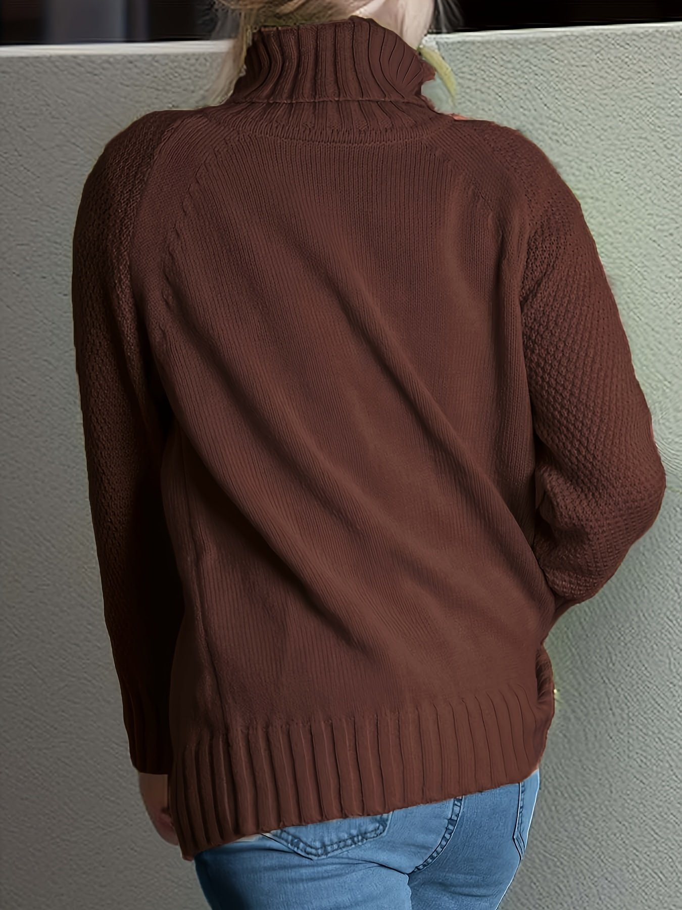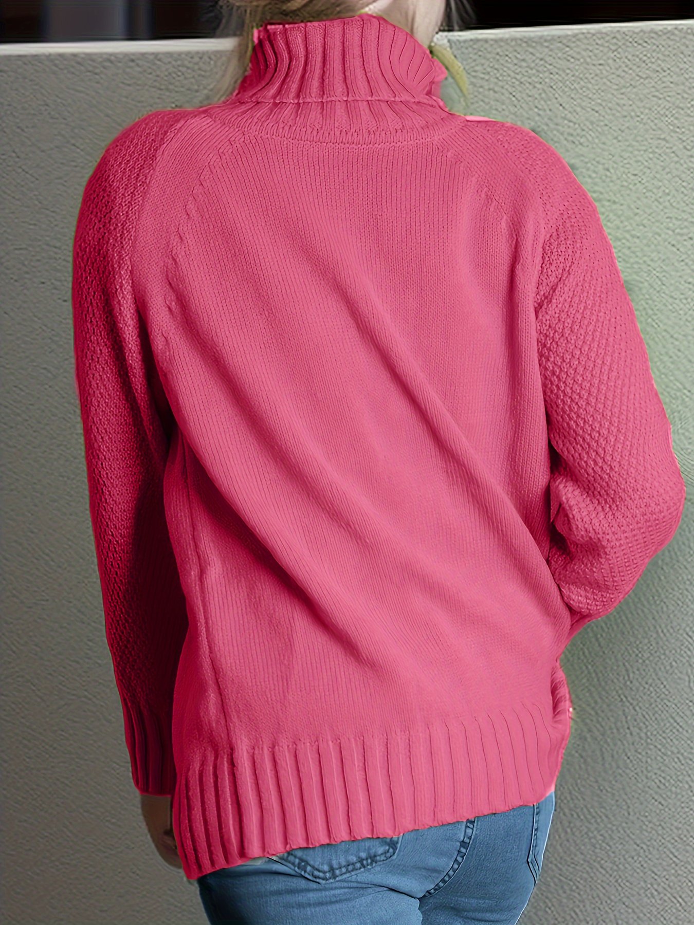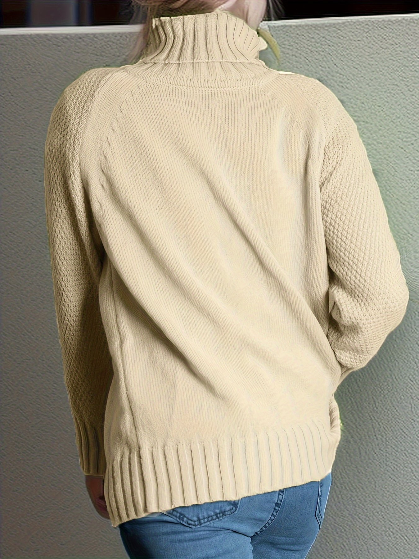 Solid Turtle Neck Loose Pullover Sweater, Casual Long Sleeve Raglan Shoulder Sweater, Women’s Clothing