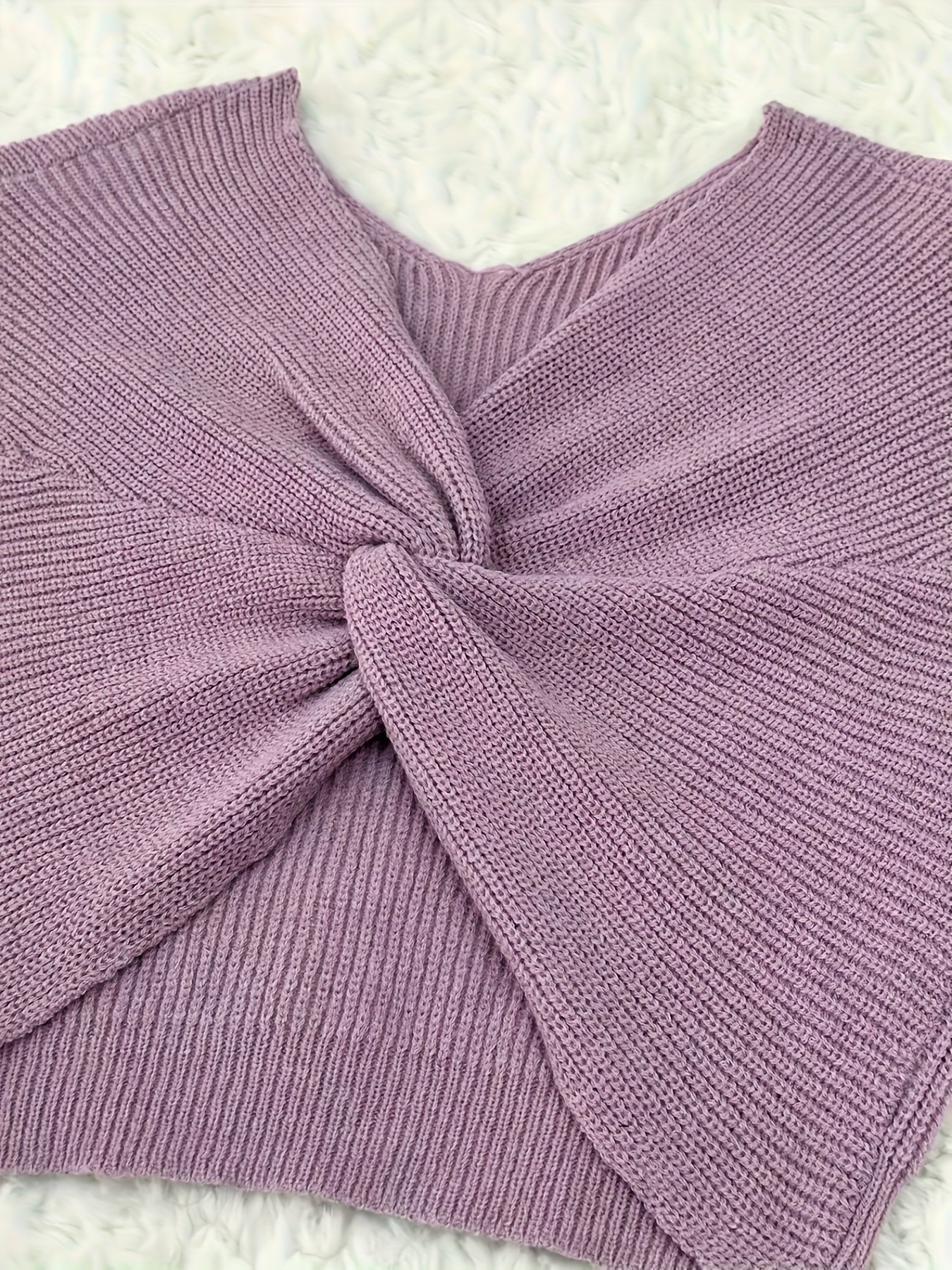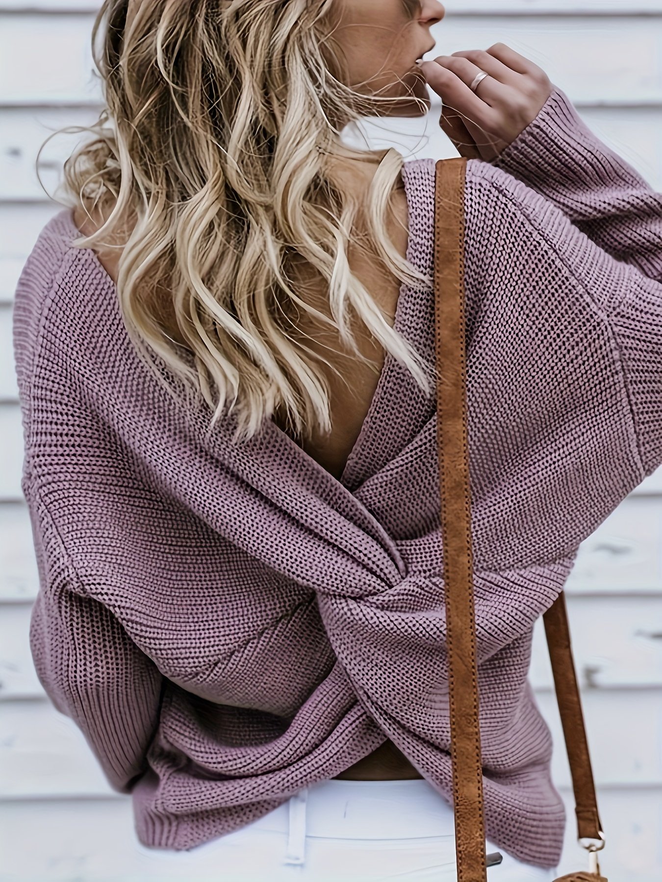 Be the first to review “Solid Twist Back Pullover Sweater, Elegant Backless Long Sleeve Sweater, Women’s Clothing”