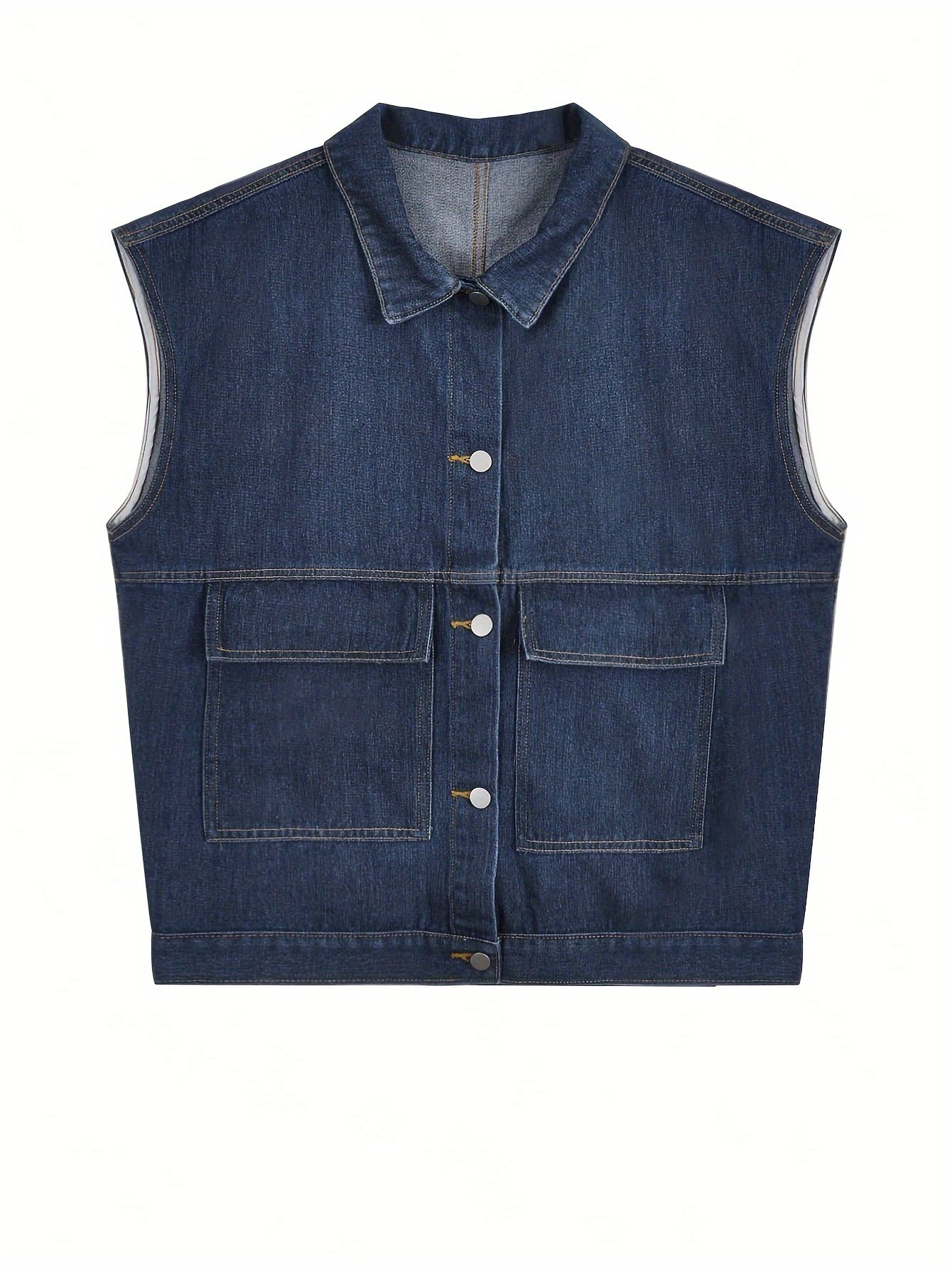 Women’s Sleeveless Denim Jacket, Solid Color Turn-Down Collar, Loose Fit, Single-Breasted Casual Versatile Street Style Jean Outerwear for Spring/Summer