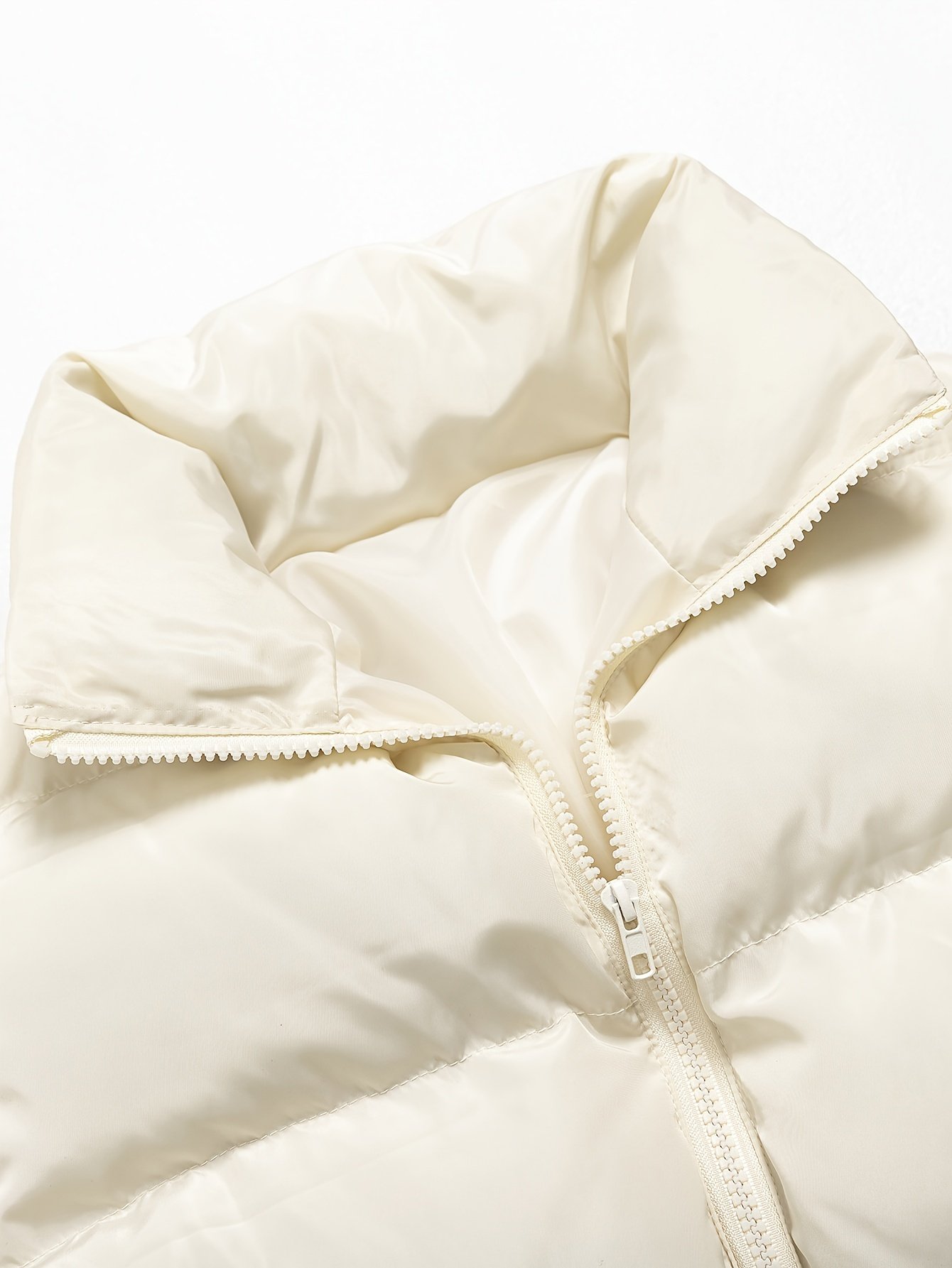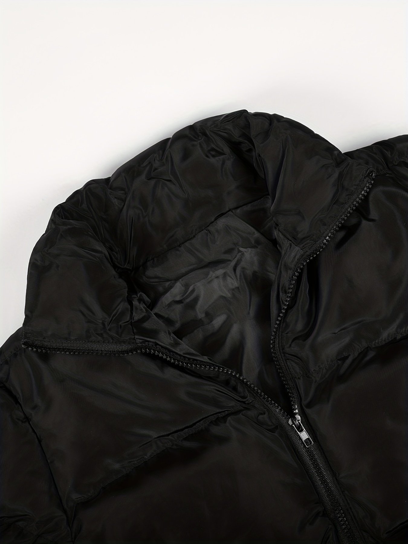 Zipper Warm Puffer Jackets For Winter Hiking Ski, Solid Color Crop Puffer Coat, Women’s Clothing for Koningsdag/King’s Day
